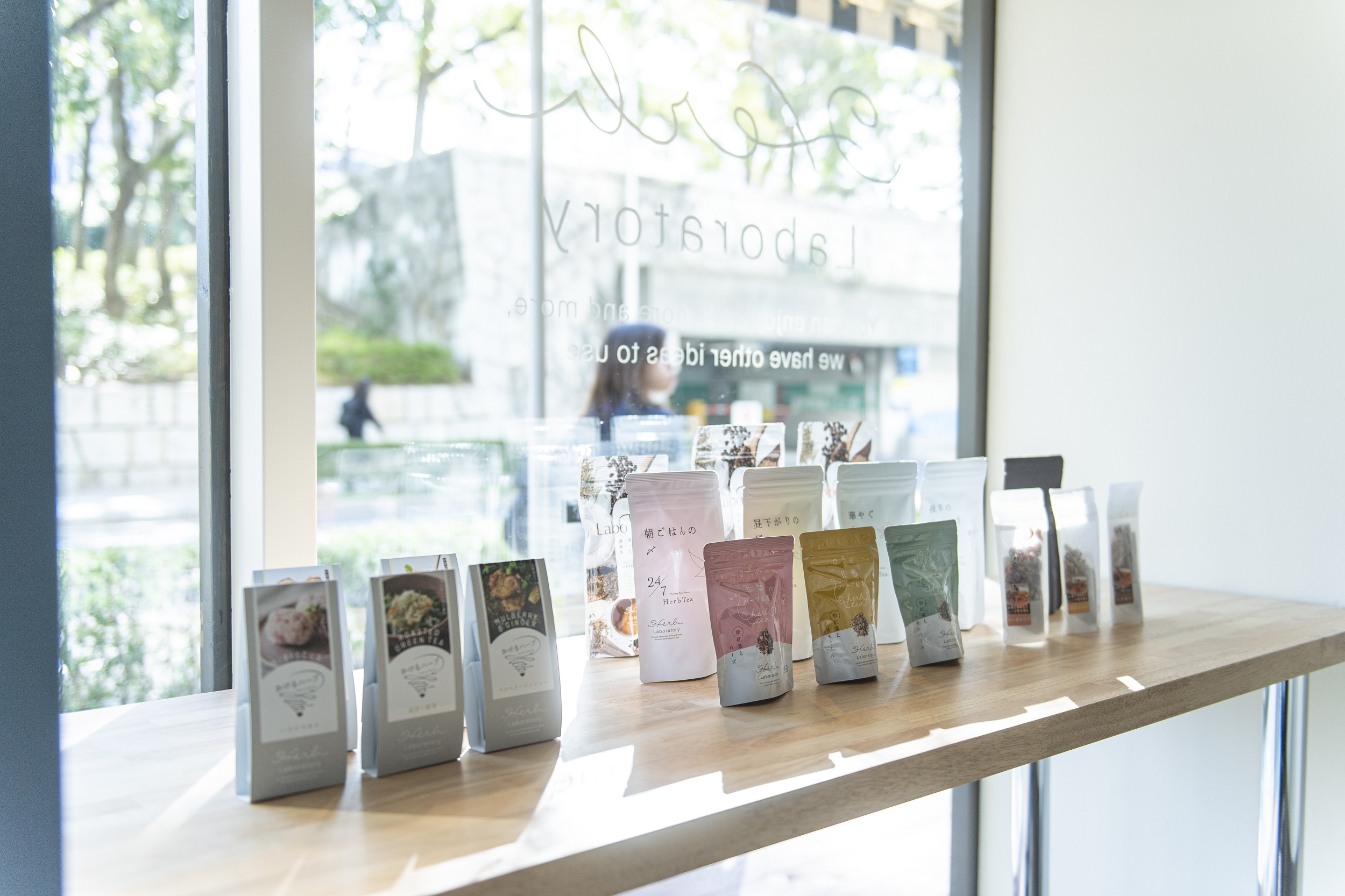 健康茶「ラボティー」、ハーブ×出汁の新感覚調味料「かけるハーブ」、お茶にとかすハーブシュガー「とかすハーブ」、暮らしに寄り添う有機ハーブティ「 24/7ハーブティー」、宮崎産の有機和紅茶を使った「五感ハーブ紅茶」など。