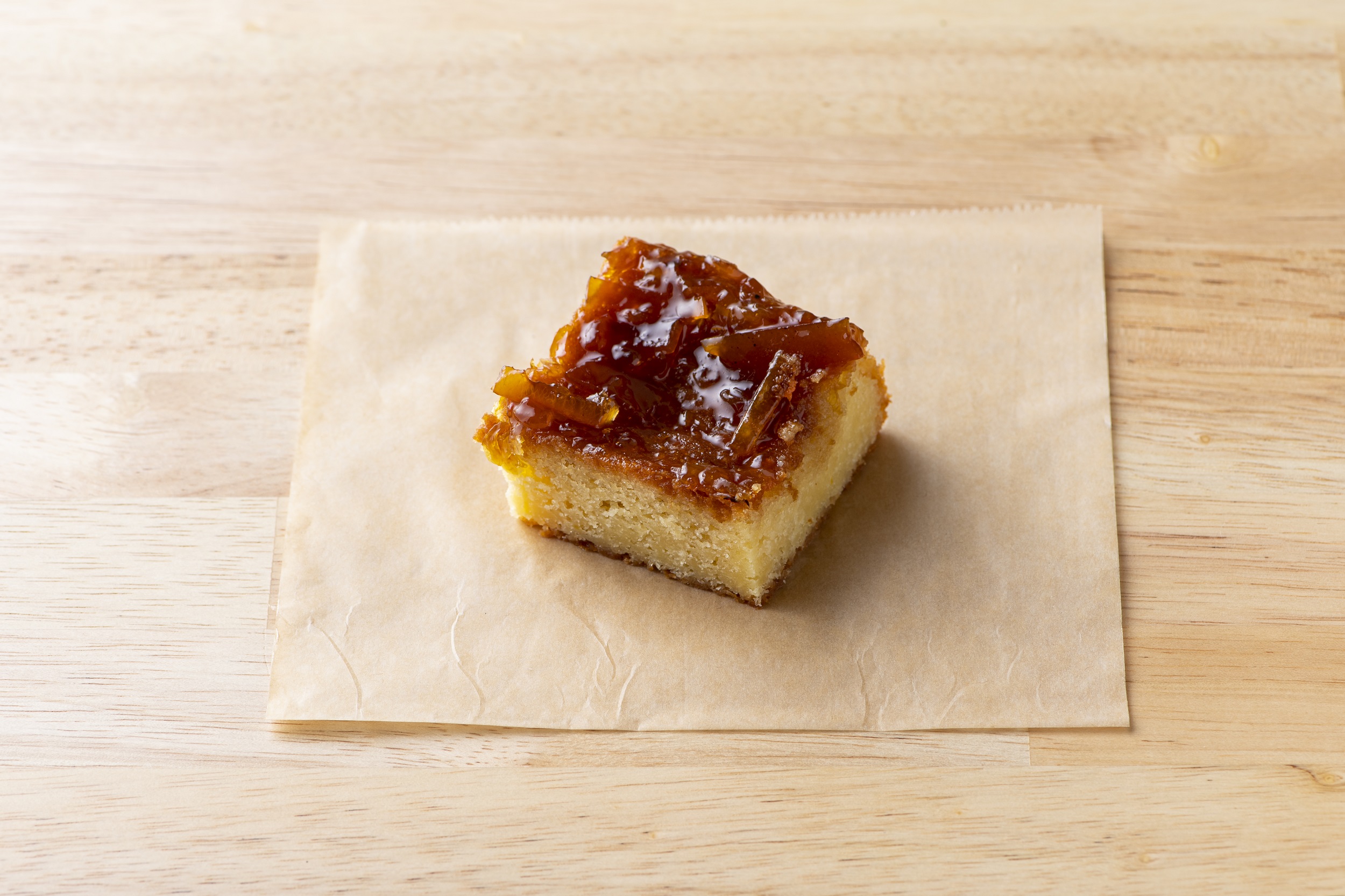 マーブルチーズブラウニーはほんのりスパイスが効いています。柑橘のウィークエンドケーキは、オレンジピールやレモンピールを甘く煮詰めて表面に塗っています。