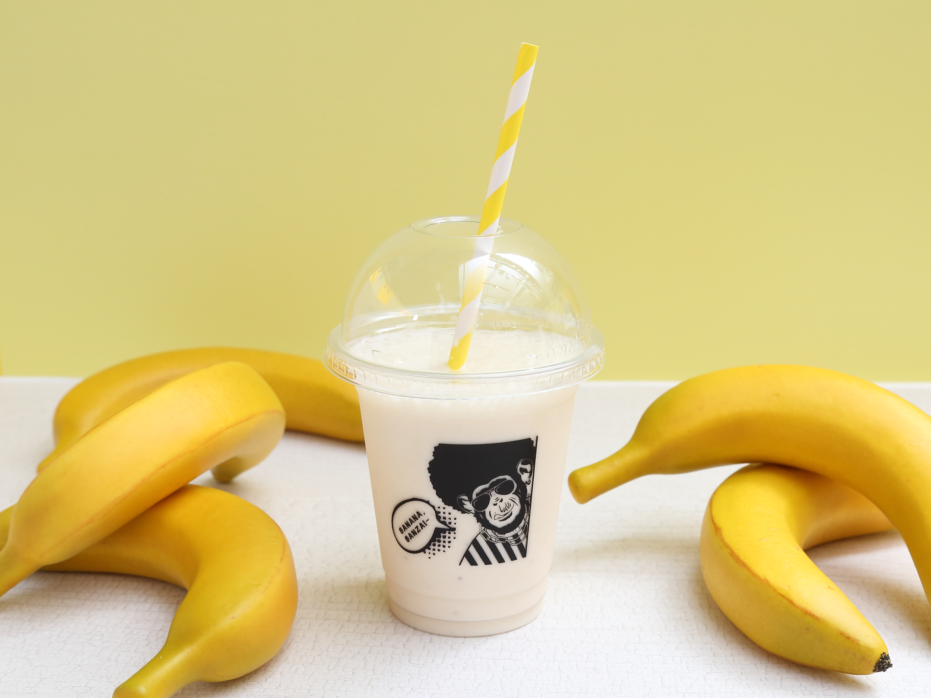 高地栽培のバナナを追熟させて甘さを極限まで引き出し、2種類(ミルク・オーツミルク)からベースを選びます。お好みで10種類(黒ごま・黒ごまきな粉・きな粉・宇治抹茶・エスプレッソ・ココア・ベルギーチョコ・ドラゴンフルーツ・旬のフルーツ)のアレンジを選ぶこともできます。