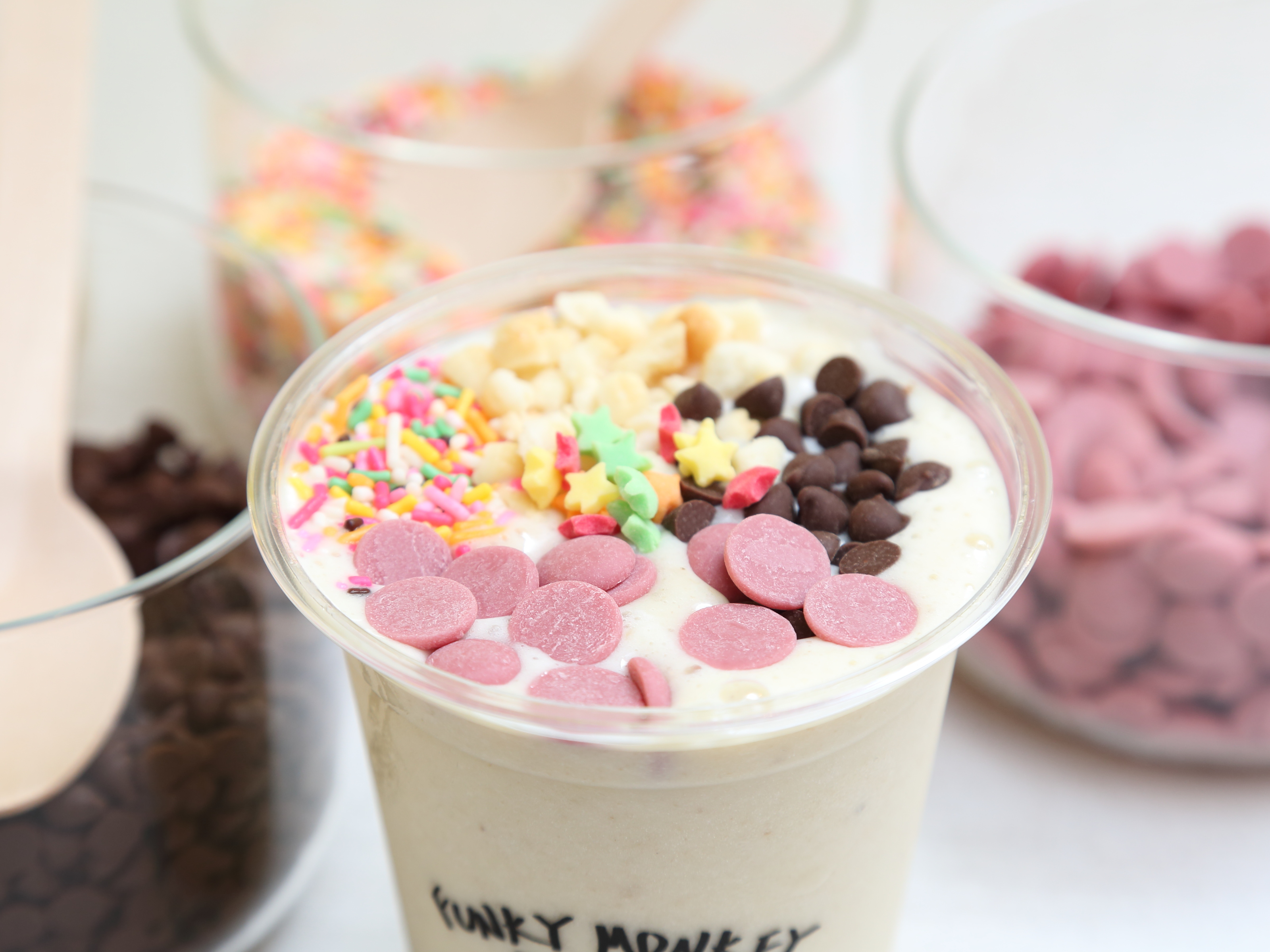 そして「FUNKY MONKEY BANANA」では、+100円(税込)でお客様が自由に11種類のトッピングアイテムをバイキング形式で楽しめのが特徴。