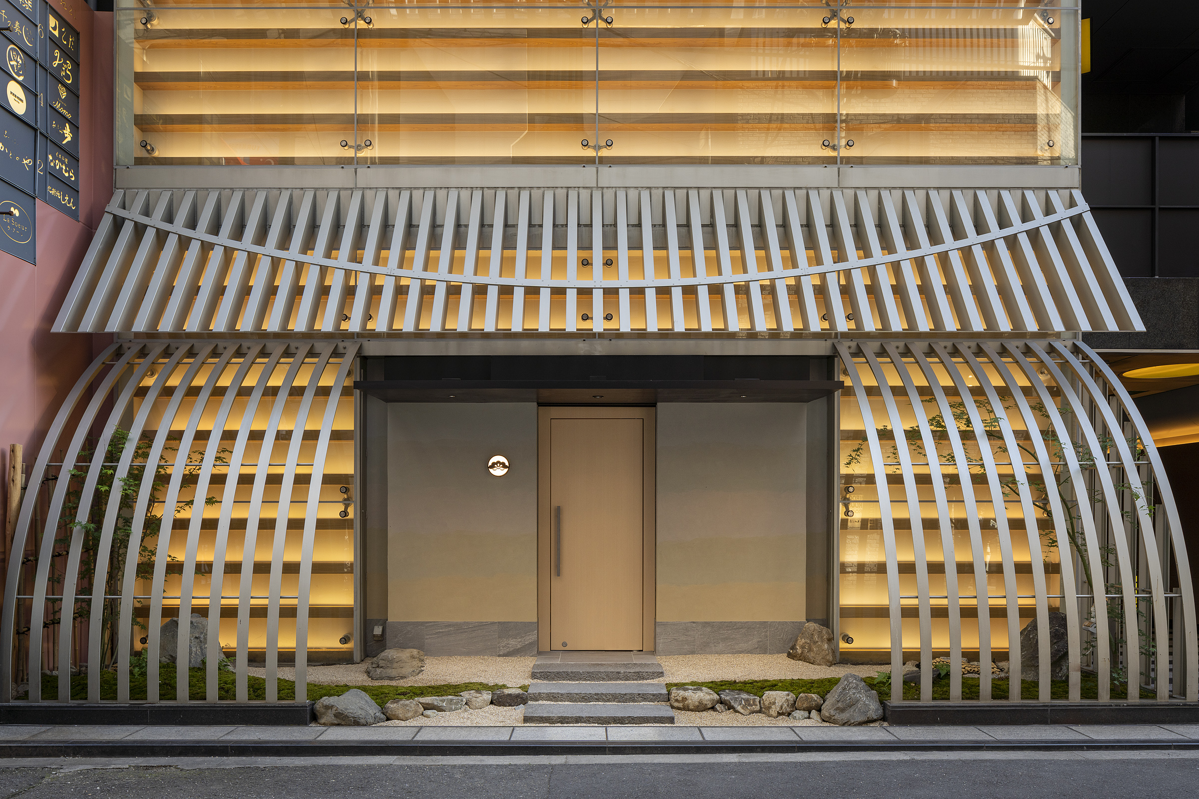 当店は1995(平成7)年に西中島で創業した、佐賀牛をはじめとする国産牛・黒毛和牛がリーズナブルに食べられる老舗焼肉店「きっしゃん」ブランドの新店舗です。常連様に向けて大切な方と、特別な場面で使っていただきたい思いから看板には店名を入れず、ロゴマークだけを掲げました。6月からスタッフの教育も兼ねて常連様向けにオープンしておりますが、お客様からはロゴマークを見て「きっしゃんのマツ」と呼ばれています。重厚な門構えは扉を開ける際に少しドキドキするような緊張感を漂わせ、中へ入ると松のオブジェが目に入る天然石のカウンターが広がります。全席無煙ロースター完備で新型コロナウイルス感染拡大防止にも万全を尽くしております。