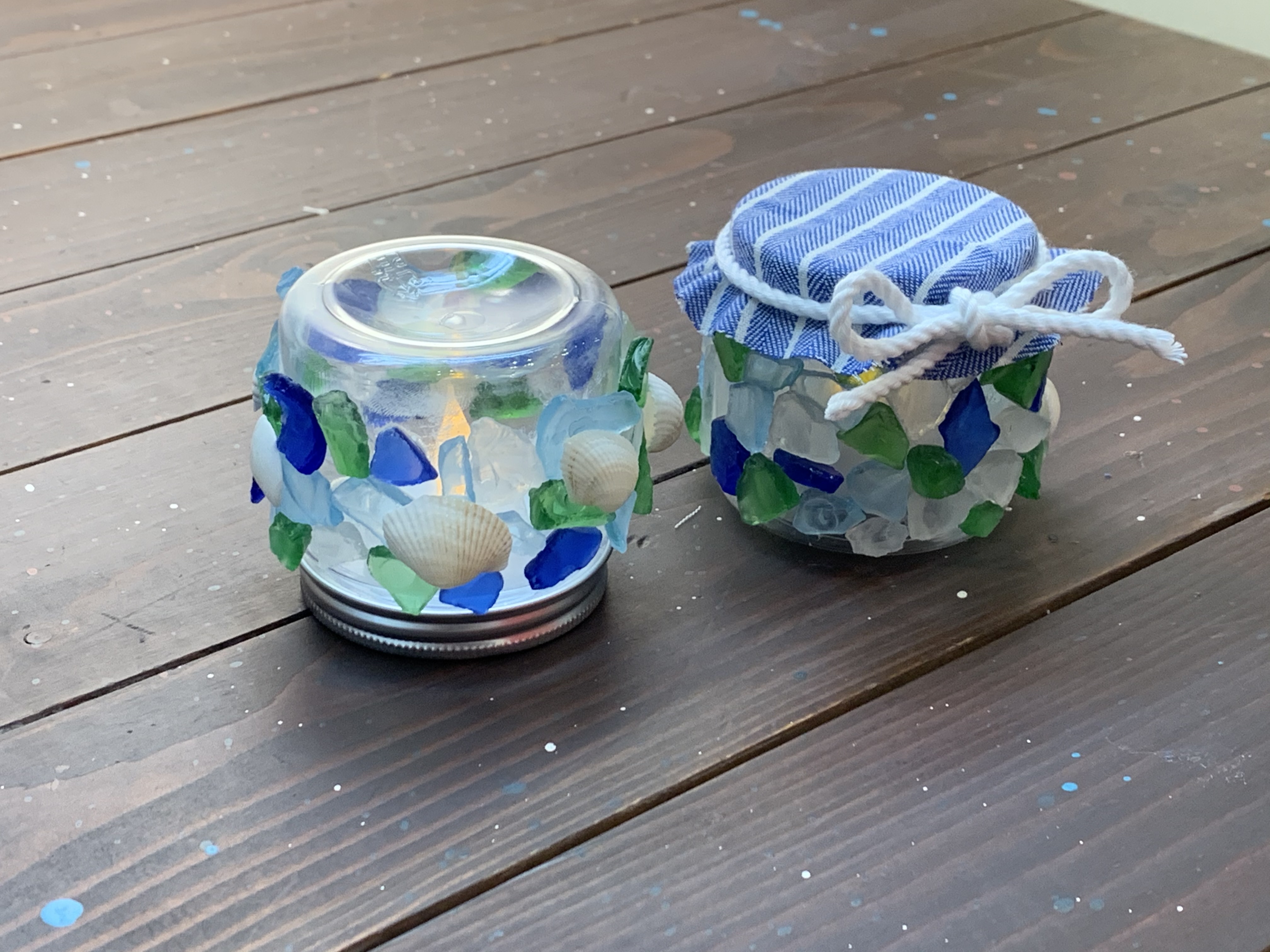 また、シーグラスを回りに貼り付けていくだけでお子様でも簡単に作れる「シーグラスを使った簡単ランプ」も同時に作って頂けますので、親子参加大歓迎です。