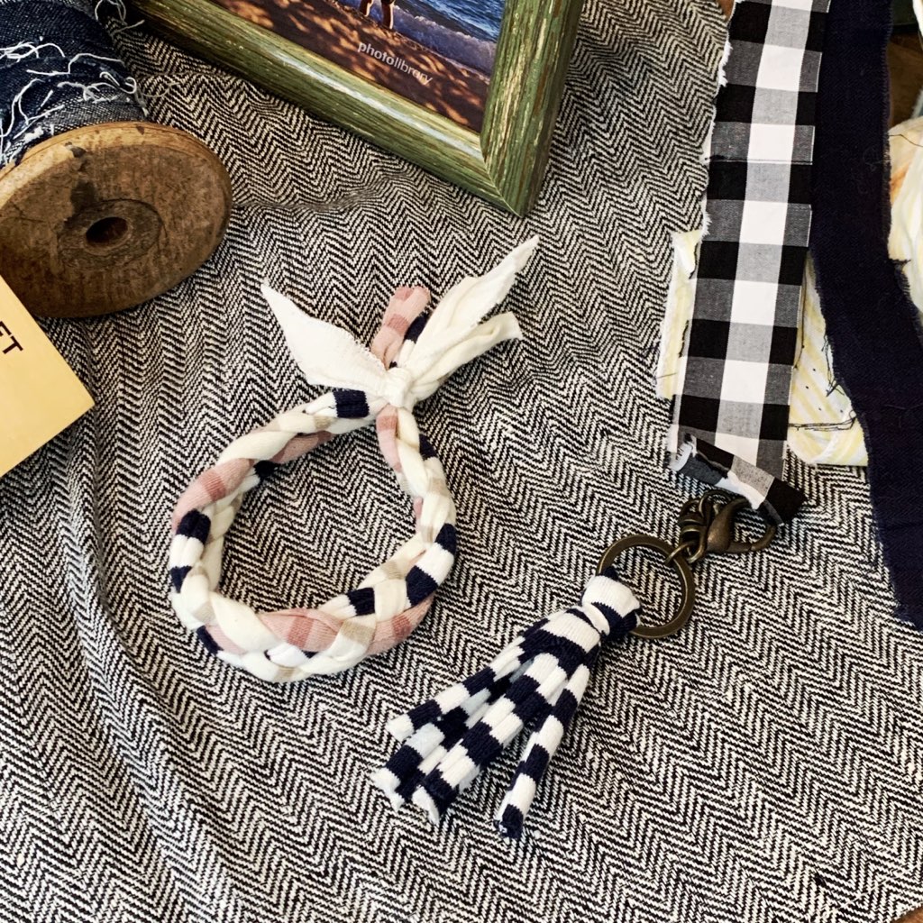 ビーチサンダルの鼻緒にしたり、オリジナルのブレスレットやキーホルダーにしてみたりと、紐状なので使い方は色々です。Tシャツヤーンの作り方を学んで、おうちでも色々なDIYに活用していただければ幸いです。
