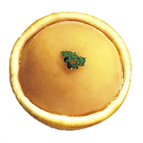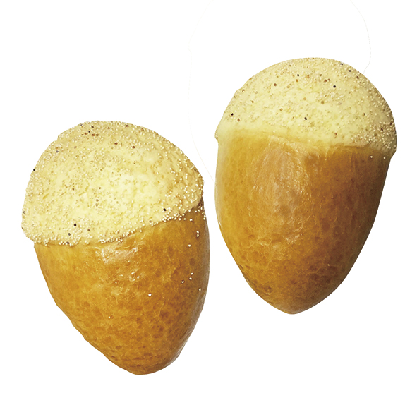 どんぐりに含まれる渋みの成分タンニンを表現するために「ほうじ茶」を使った自家製カスタードクリームを中に詰めました。どんぐりのカサの部分はクッキー生地とケシの実を使って表現し、ザクザクとした食感に仕上げました。