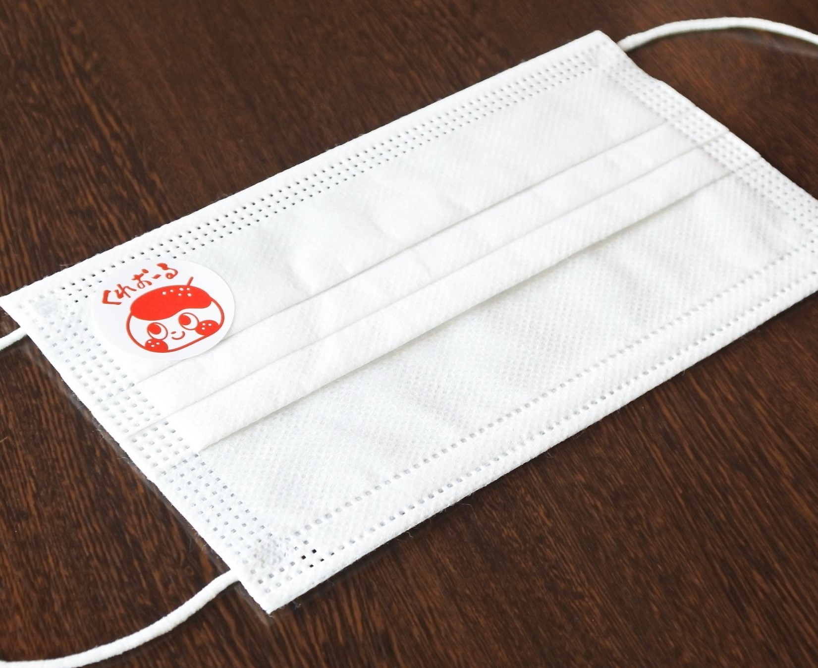 ②会計終了後に、お客様のマスクにくれおーるちゃんの広告シールを貼ります。