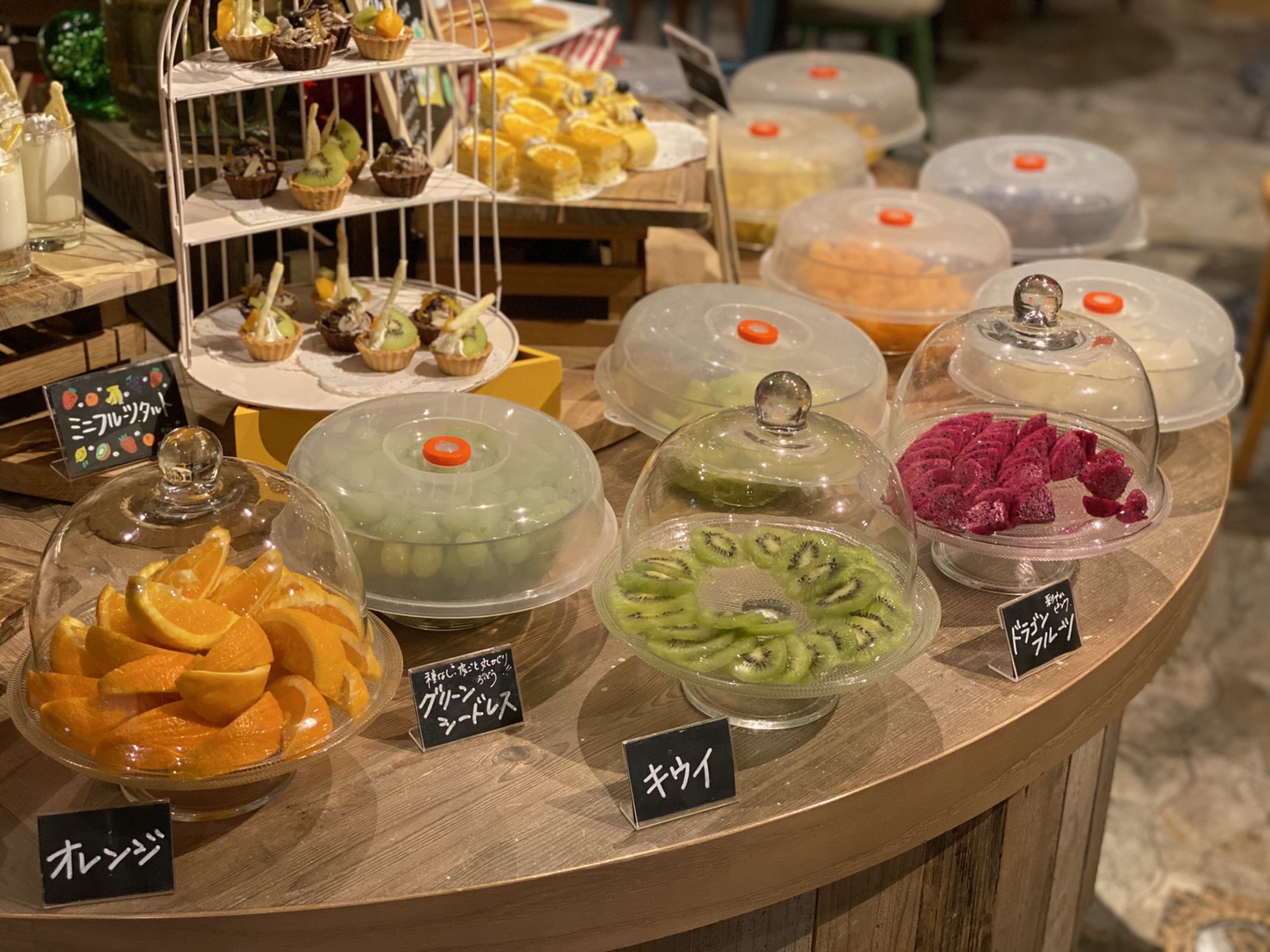 フルーツビュッフェではこれまで常時10種類以上のフルーツ食べ放題や白玉、タピオカ、パンケーキなどスイーツを提供。今回、レモンパンナコッタやラズベリーケーキ、フルーツロールケーキなど6~8種類のスイーツを用意するほか、ビスコッティーやチョコクランチなどの焼き菓子も揃えます。夏季限定商品として、かき氷も用意。季節のフルーツやフルーツソース、生クリーム、練乳などをかけて好きなようにアレンジいただけます。(80分制 2,480円。肉料理がメインのランチプレート付)