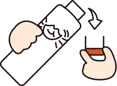 (1)目盛りキャップまたはコップ等の別の容器に取り、5ml前後を取り、口に含みます。