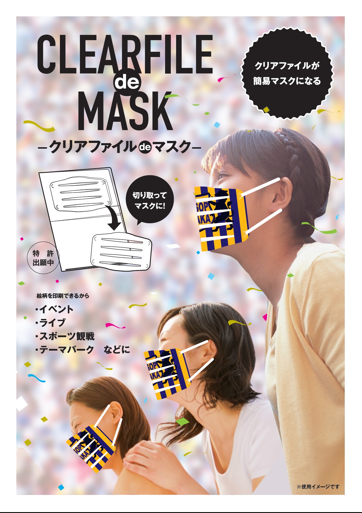 また、クリアファイルのデザイン次第では、イベント・ライブ・スポーツ観戦・応援グッズetc 販促ツールとして【クリアファイルde マスク (https://cf-desi.com/order/mask.html)】の活用方法は∞です。