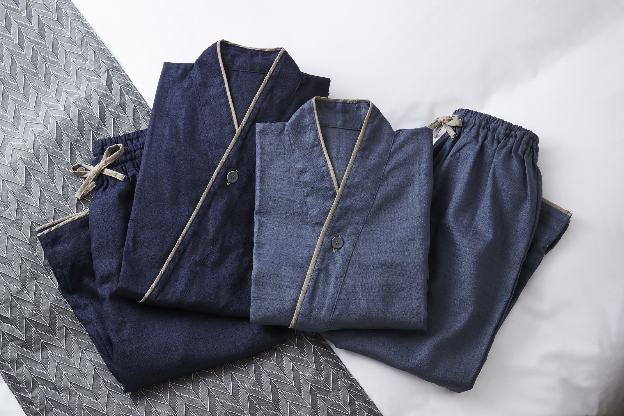 客室には、シックでモダンな常滑焼の急須や有田焼の湯呑み、京都の伝統工芸品「京くみひも」をあしらった、職人が1つ1つ手作業で作製した茶缶や、肌触りが優しく丈夫なバニラン素材を使用したオリジナル作務衣をご用意しております。是非お試しいただき、お土産や贈り物としてもご利用ください。