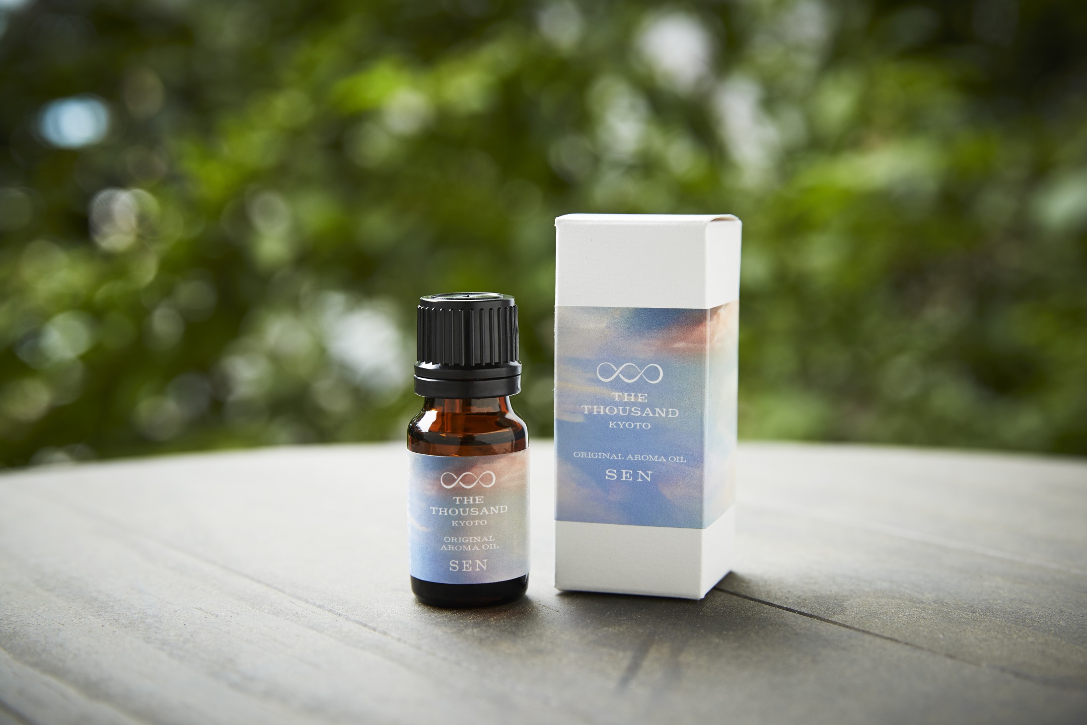 ホテルのロビーでも使用されている優しい香りのアロマは、ホテルのイメージに合わせてヒノキやペパーミント、ベルガモットなどを調合したオリジナルアロマオイルです。自然の空気や大地を感じて、瞑想するような深いリラクゼーションへと誘います。THE THOUSAND KYOTOの香りをご自宅でも。