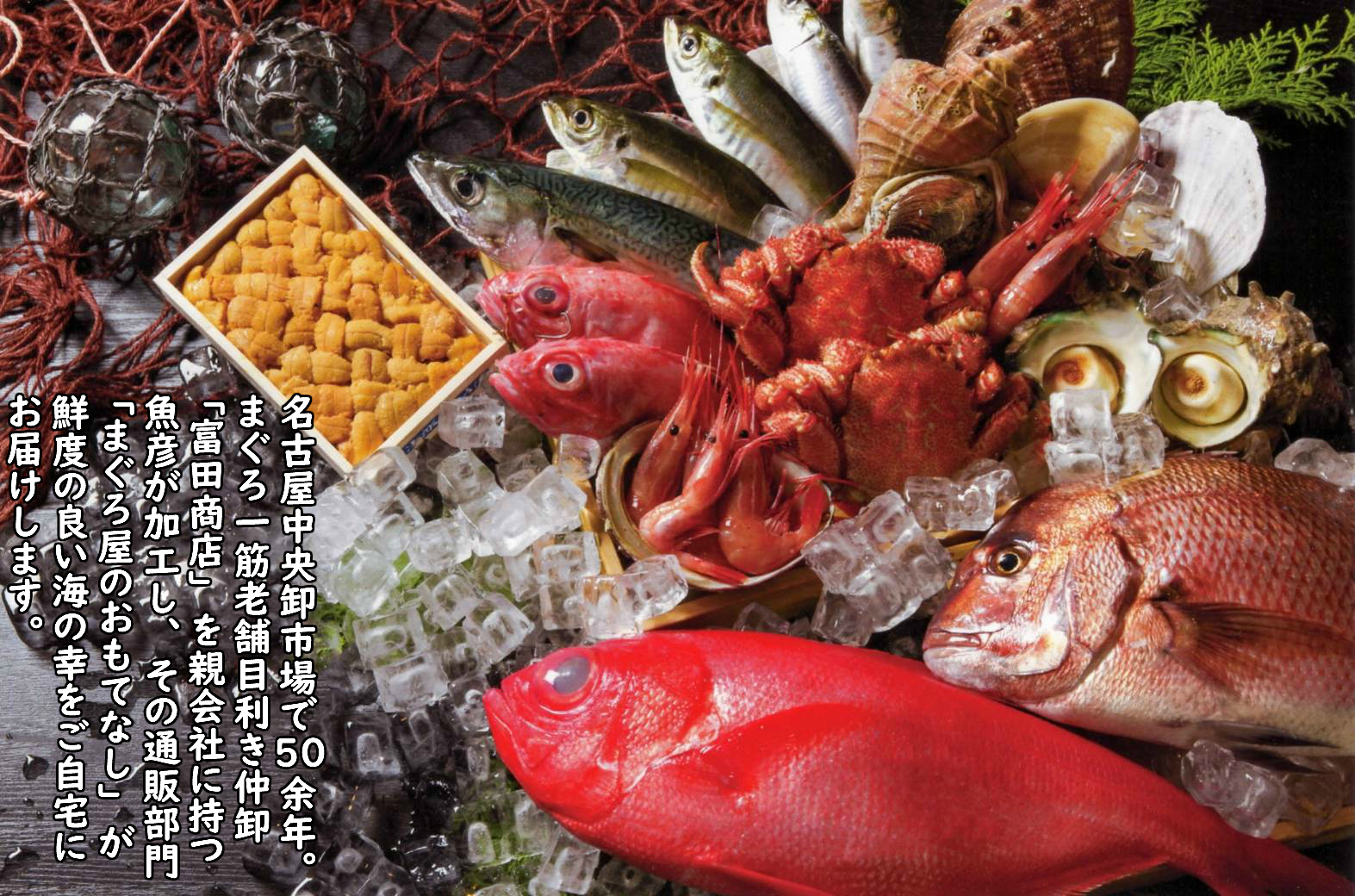 弊社は名古屋市中央卸売市場の仲卸として50余年。市場の中でも老舗に数えられる店です。スーパーや町のお魚屋さん、高級料亭やお鮨屋さんが主なお客様です。