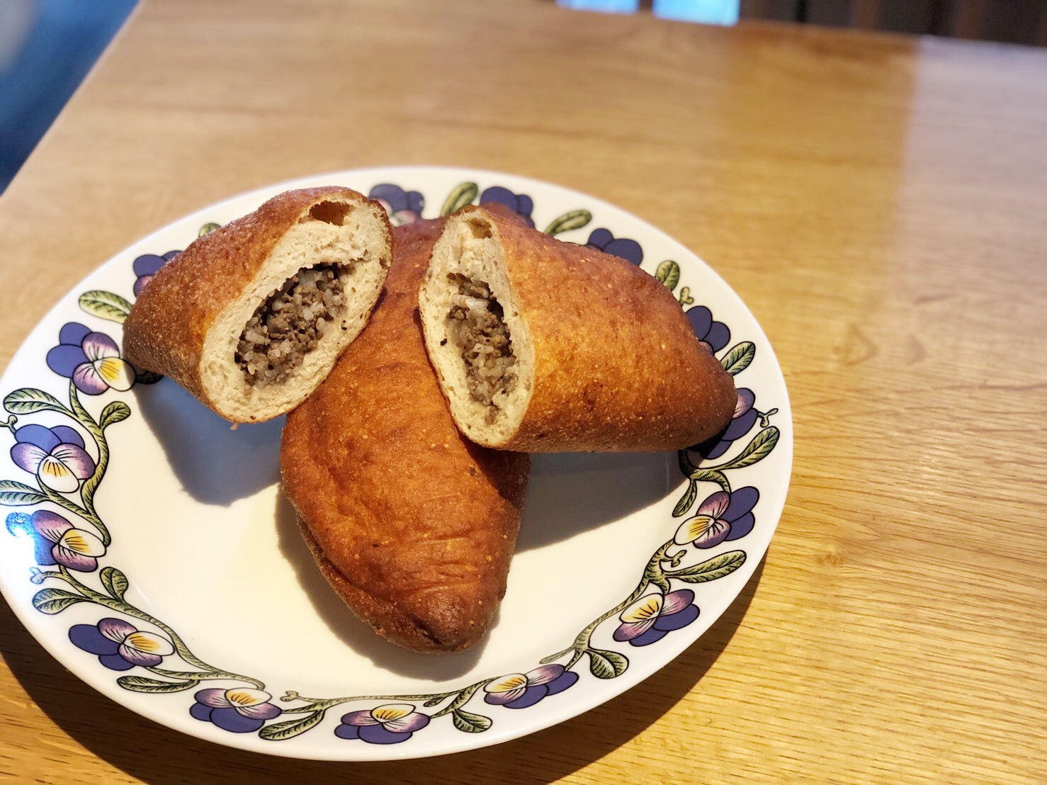 リハピーラッカ(Lihapiirakka)とは、フィンランドのお惣菜パンで、街中でもよく目にします。