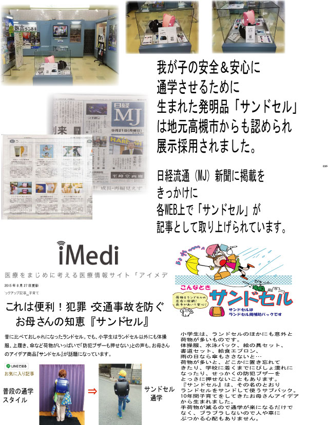 行政機関からも認められた ランドセル用補助バッグ「サンドセル」をこれを機に