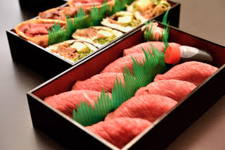 当店は、滋賀県近江八幡で飲食店を展開する「旬菜旬魚 煌」が手掛ける近江牛の専門店です。大丸梅田店様が秋のリニューアルに向けて近江牛を探していたところ、オーナーの橋本が亀井牧場の近江牛を紹介。そのようなご縁から亀井牧場と協力し、出店することとなりました。目玉メニューは「近江牛ローストビーフちらし」で、外はこんがり、中はジューシーなまましっとり仕上げています。これまで催事などで限定的に提供、限定50食が連日完売となっています。初の常設店となる「肉匠 煌」では同メニューを始め、最高品質の近江牛を使ったメニュー(弁当=6種、すし=4種、惣菜=10種)を用意します。