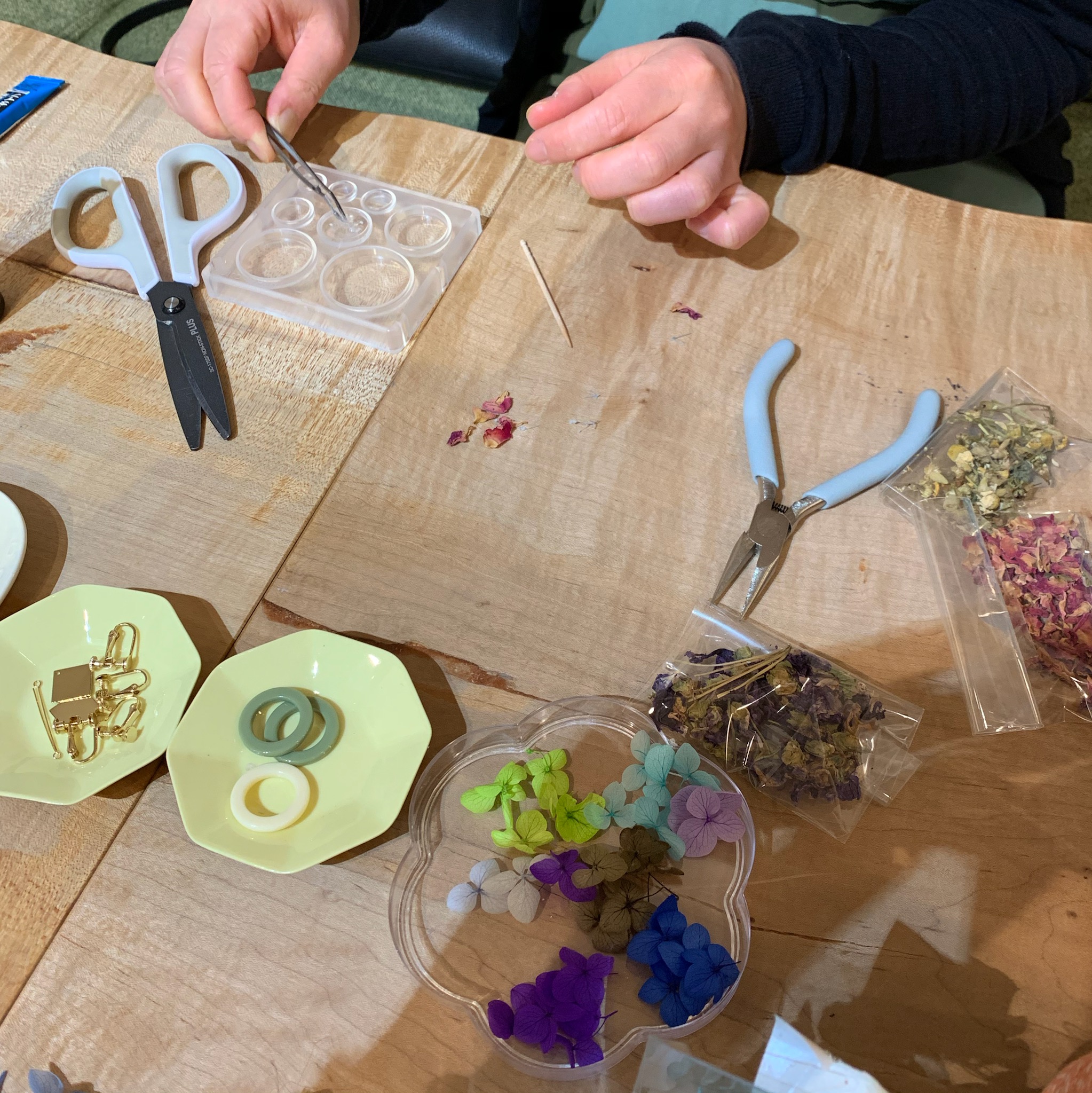 お家でも簡単にレジンを使う方法やアクセサリーを作る方法をお教えしますので、ワークショップの後は是非お家でも作ってみてくださいね。