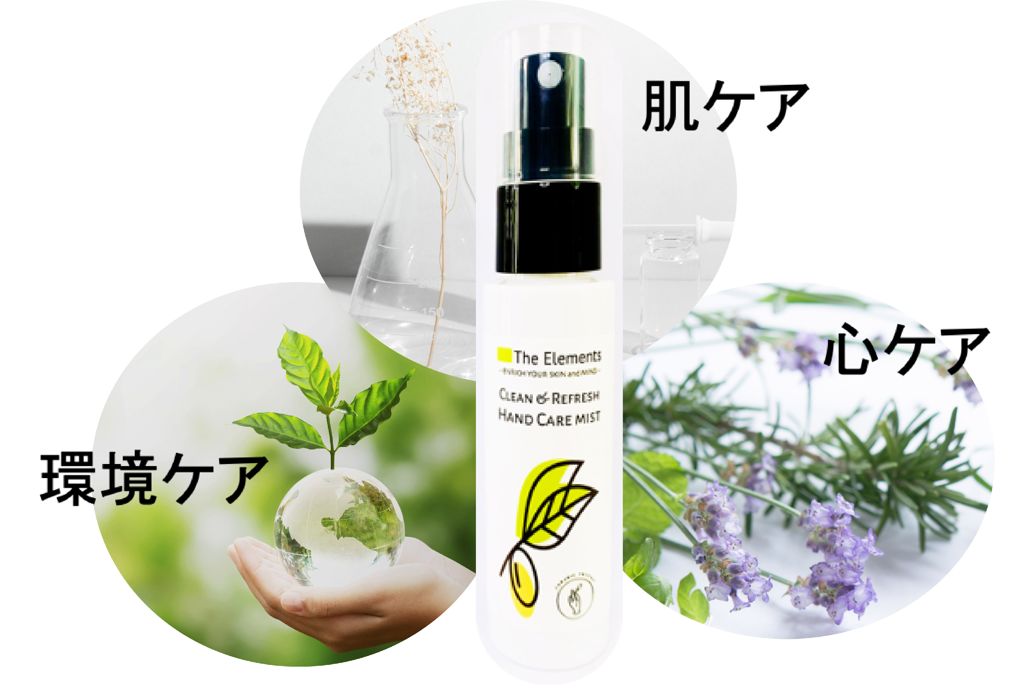 いつでもどこでも誰もが気軽に使いたくなる天然由来成分100%のエシカルな衛生ケアアイテムです。