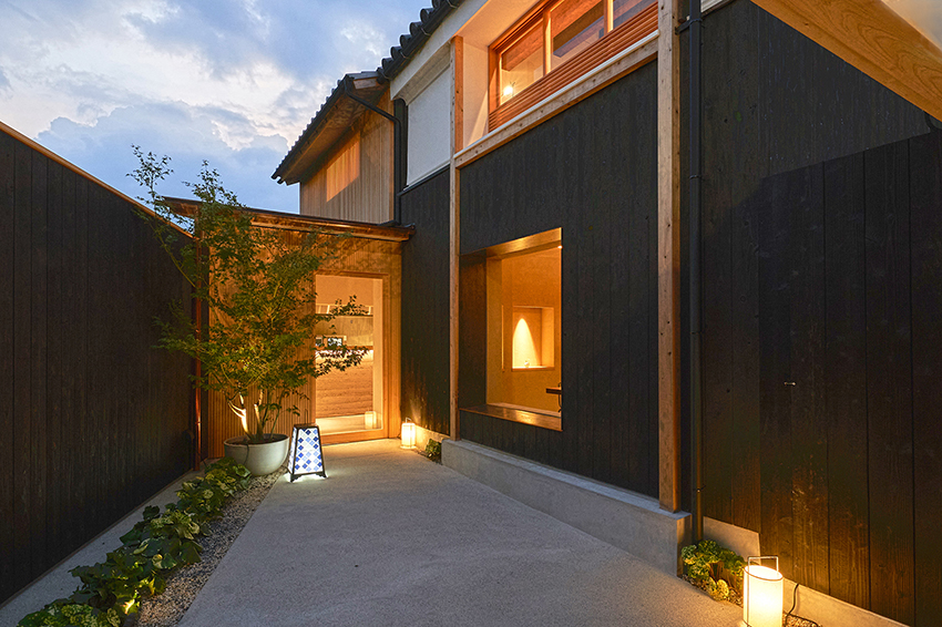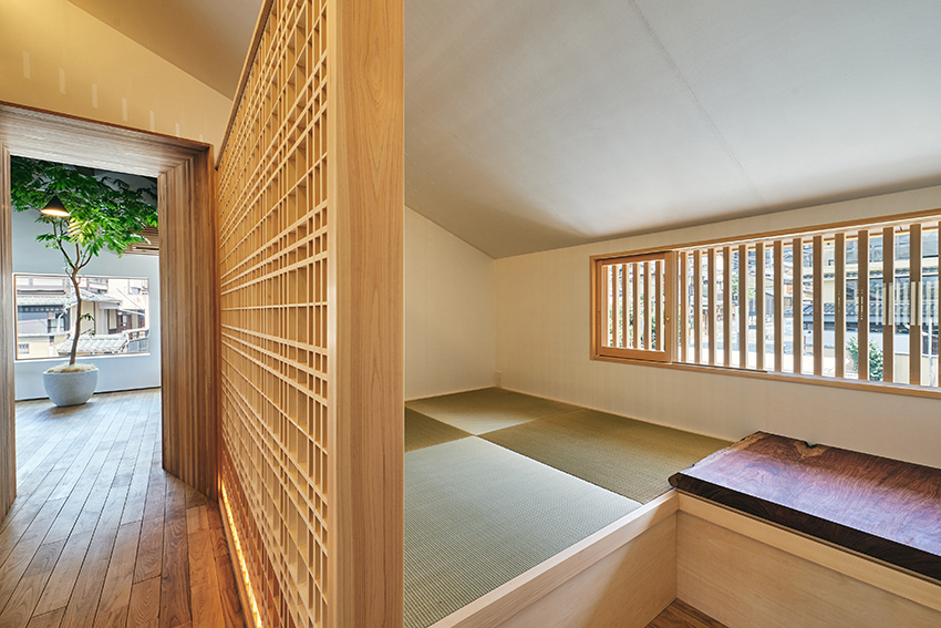 伝統的な建物に、モダンな意匠をまとう茶寮でくつろぎの時をお過ごしください。