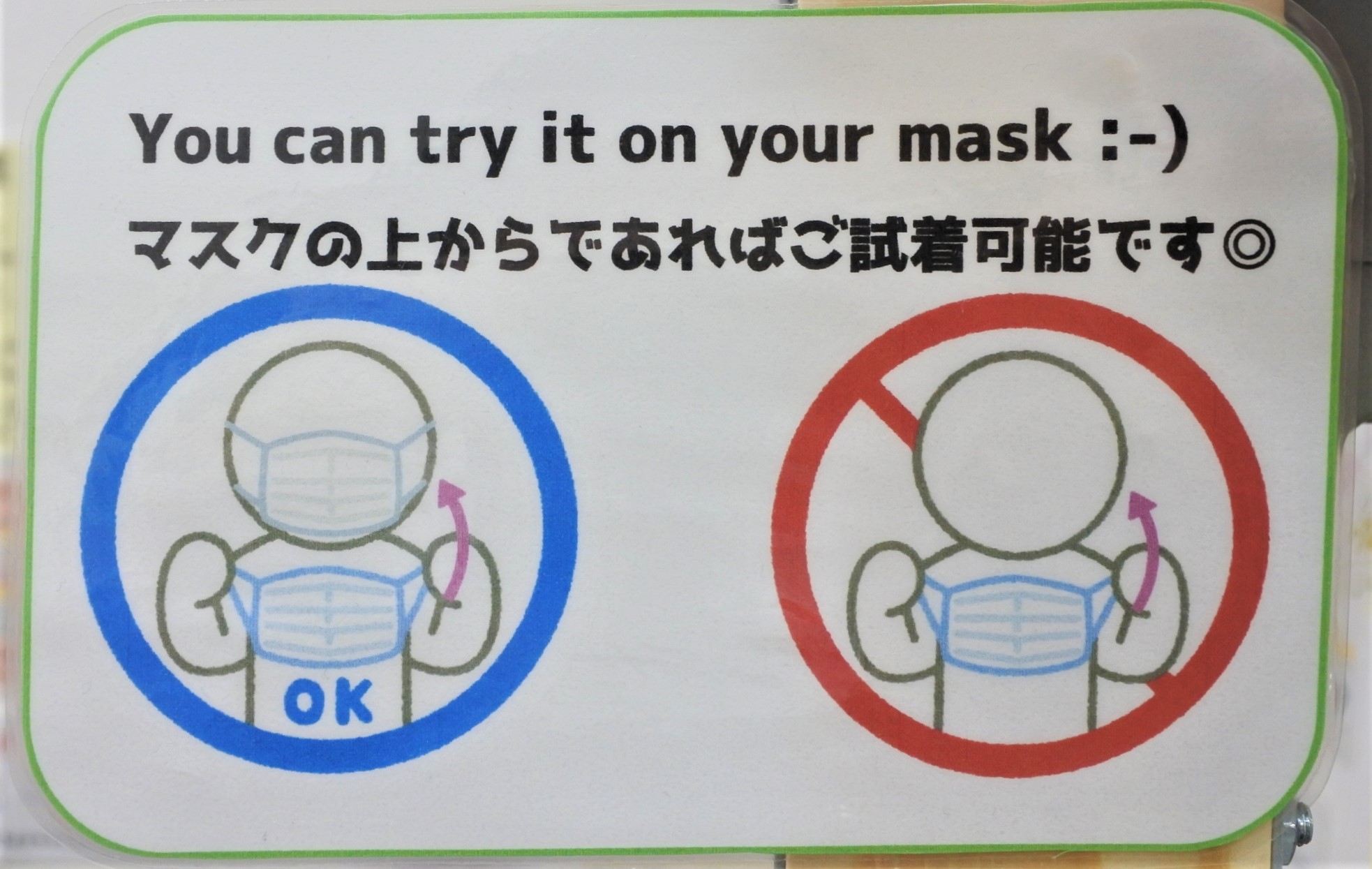 店内のマスクは全種類、マスクの上から、試着可能です。