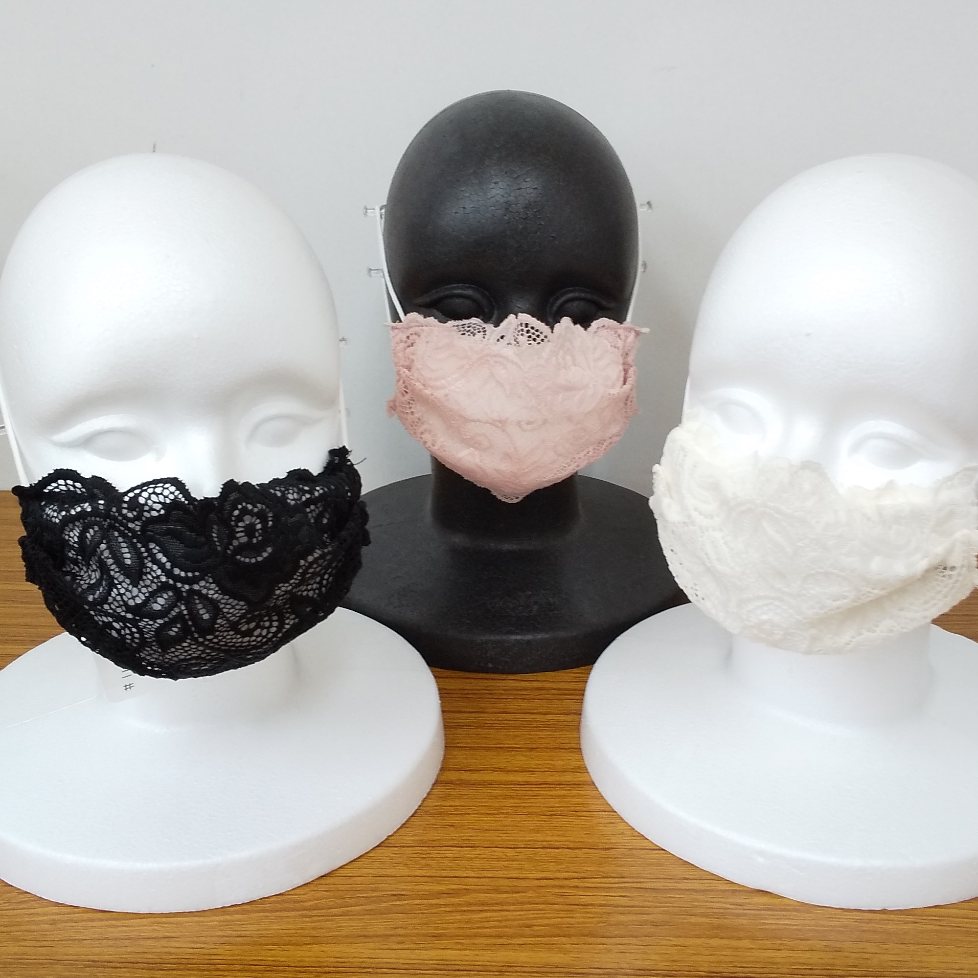 不織布マスクや「アベノマスク」に、レース生地のマスクカバーを装着するだけで、顔周りが華やかに大変身。上品な中高年女性に人気商品。