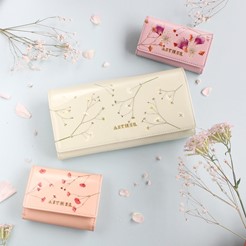 期間限定STOREでは、定番アイテムとなる花柄レザー、多彩なカラーを使ったバッグ、お財布、キーケースなどの《定番アイテム》と、11月に再発売した《押し花コレクション》の期間限定STOREの限定商品を、先行販売で全ラインナップを展開。押し花アイテムは、一つ一つ異なるお花のカラーに配置、他にはないアイテムです。