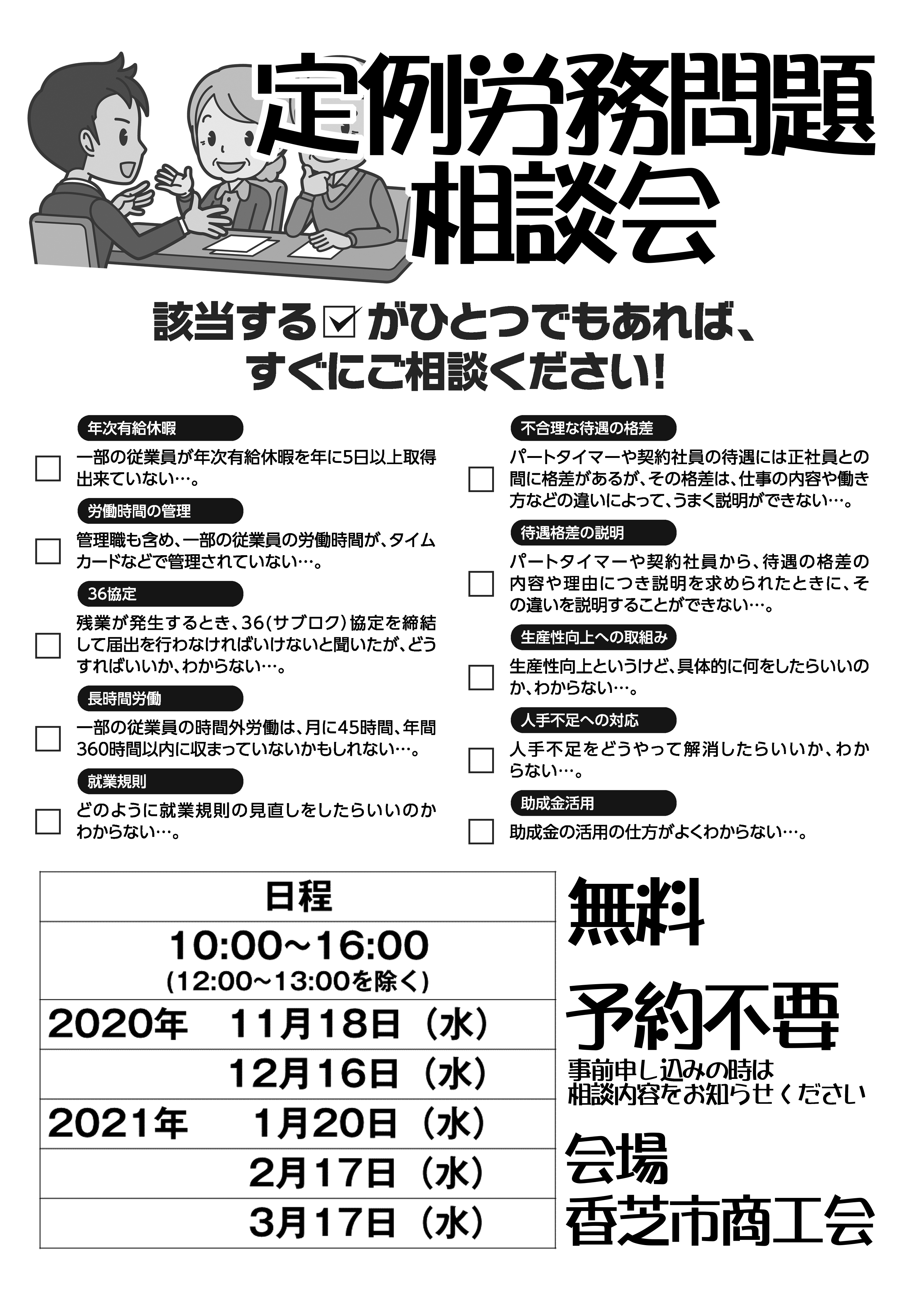 また会社が抱えている労務の問題について相談できる個別相談会も、併せて開催します。