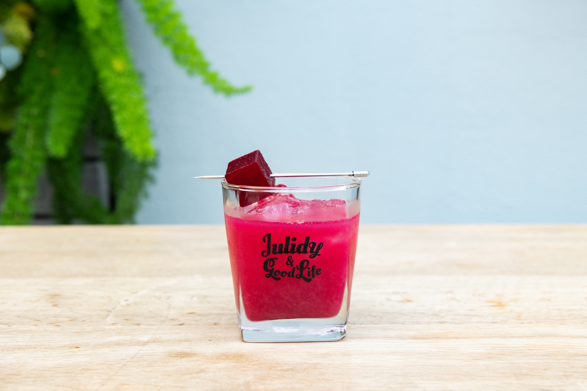 アップルやストロベリーフランンボワーズ、ビーツ、レモン、ローズヒップのさっぱりとした味わいのモクテル。カルダモン香るマリネビーツをアクセントに添えました。