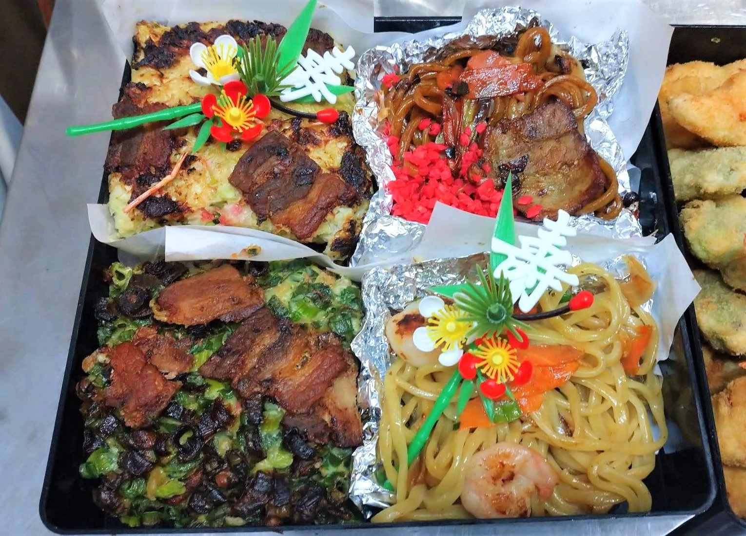 大阪を中心にたこ焼き店、お好み焼き店を展開する株式会社くれおーる(本社:大阪市中央区、代表取締役社⾧:加西幸裕)は2021年1月1日(金)~3日(日)の3日間、たこ焼き、串かつ、お好み焼き、焼きそばの大阪名物をお重に詰めた「くれおーるの大阪名物大満喫粉もんお節」(4人前、1万円)を大阪市内限定で宅配にて販売いたします。