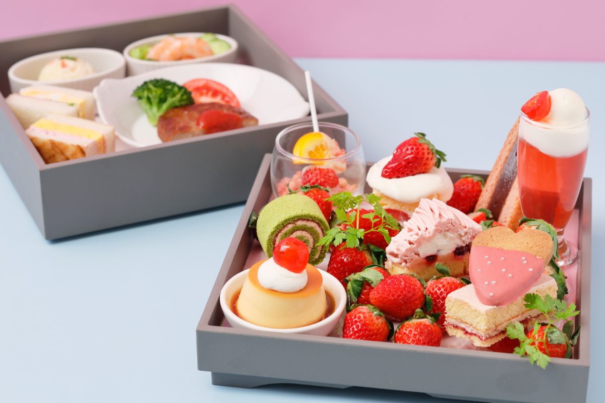 多彩ないちごスイーツと共に充実したセイボリーを取り揃えたスイーツビュッフェで、心ときめくひとときをお過ごしいただけます。