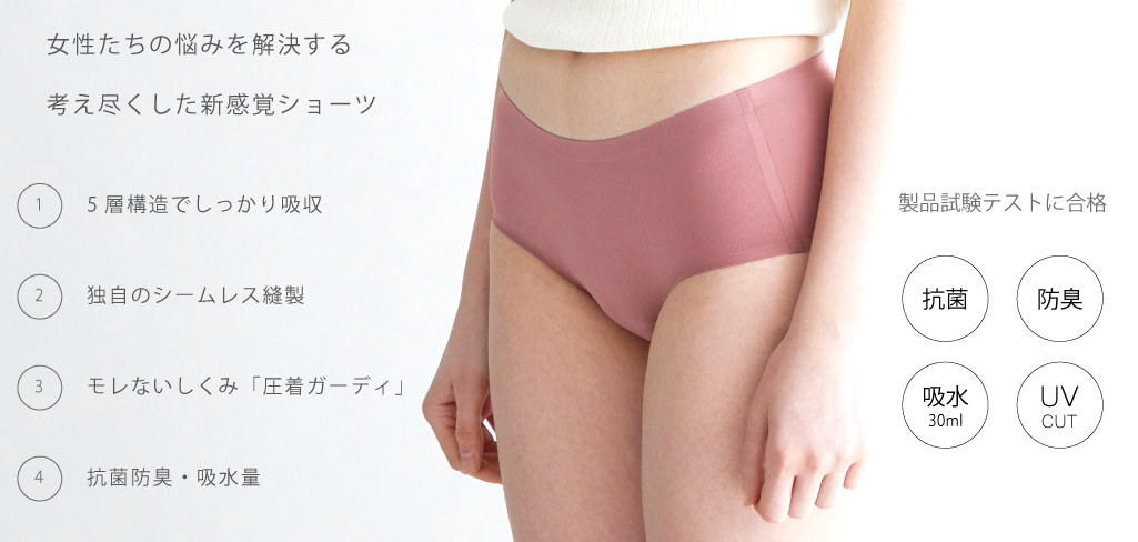 日本女性の多くは、サニタリーショーツに加え、ナプキンや布ナプキンで毎月平均約5日間過ごします。