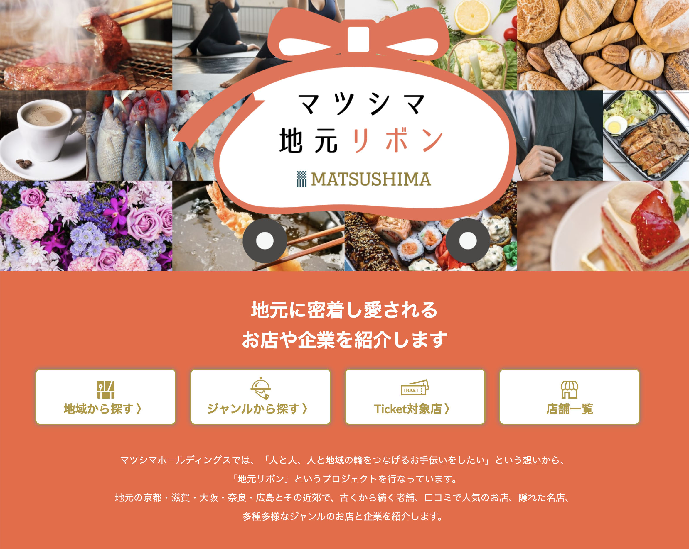 マツシマのスタッフが、お客様とコミュニケーションをとり、マツシマの地元である京都・滋賀・大阪・奈良・広島とその近郊で、古くから続く老舗、地域で人気のお店、隠れた名店、多種多様なジャンルのお店とサービスを紹介します。