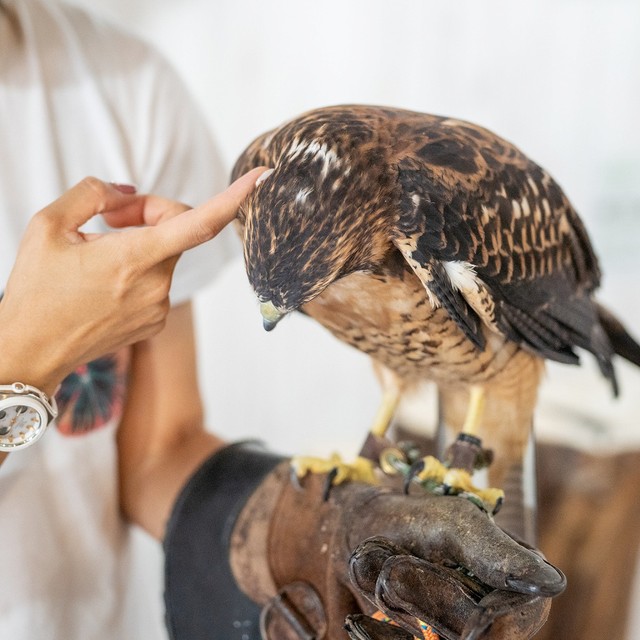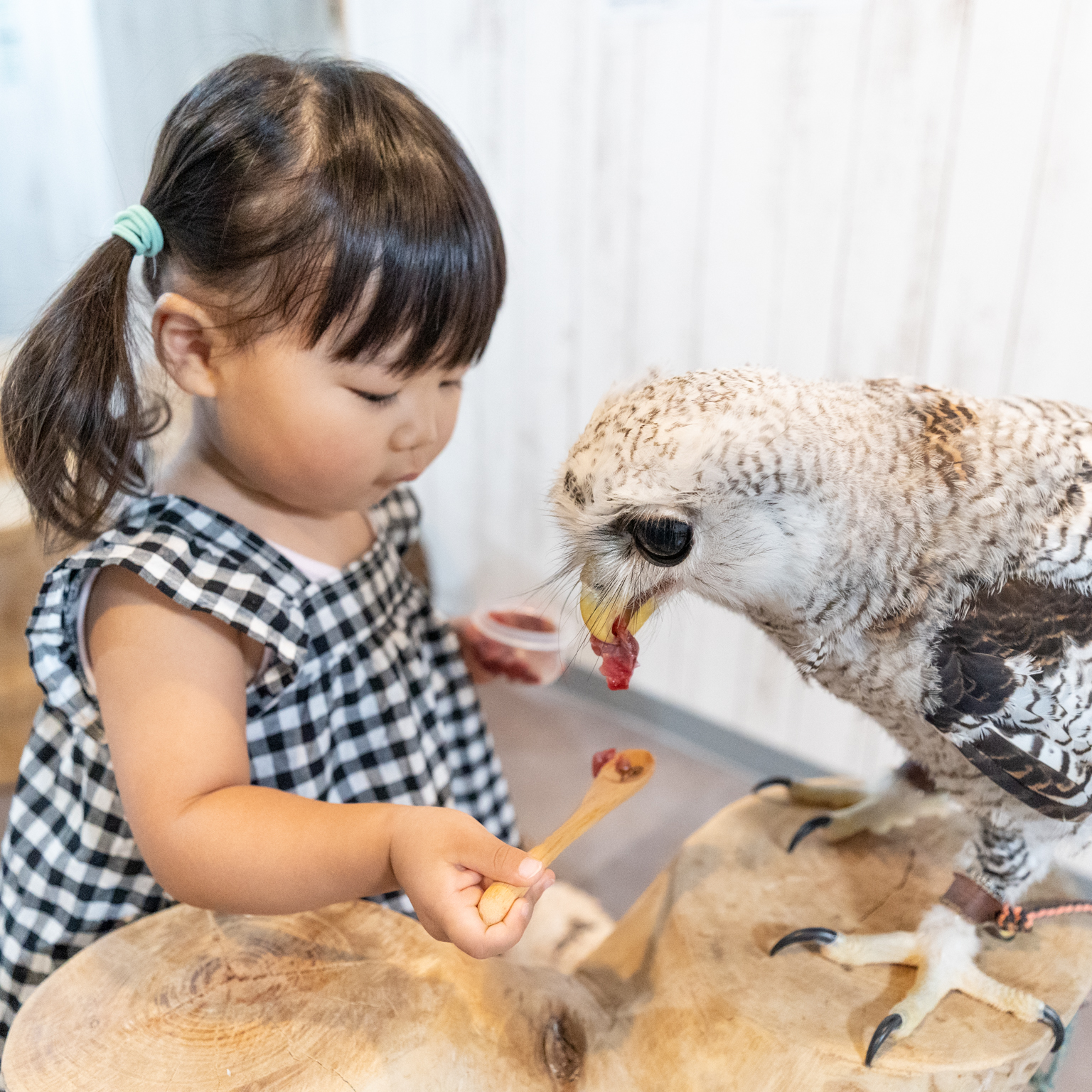 時間制限なく、利用料は大人 1500 円、1 歳以上小学生以下 1000 円。えさやり体験、腕乗せ体験、写真撮影、ドリンク1杯の中からいずれか1つ選択できる。メニューの追加は 1 つにつき 300 円。裏メニューに肩&腕のダブル乗せ(500 円)も秘かに人気。知る人ぞ知る日曜日限定の裏メニューとして鷹のフライト体験(500 円)があります。猛禽類が好きでなくてもハマってしまう方が多いです。