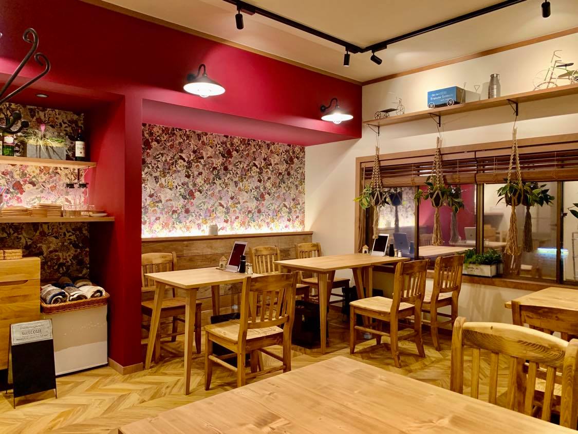 当店は2フロア構成となっており、1階はキッチン、デリバリー用として活用。2階はテーブル席14席を用意し、ウッド調のナチュラルスタイルの店内に仕上げております。※現在は席数を減らして営業しております。