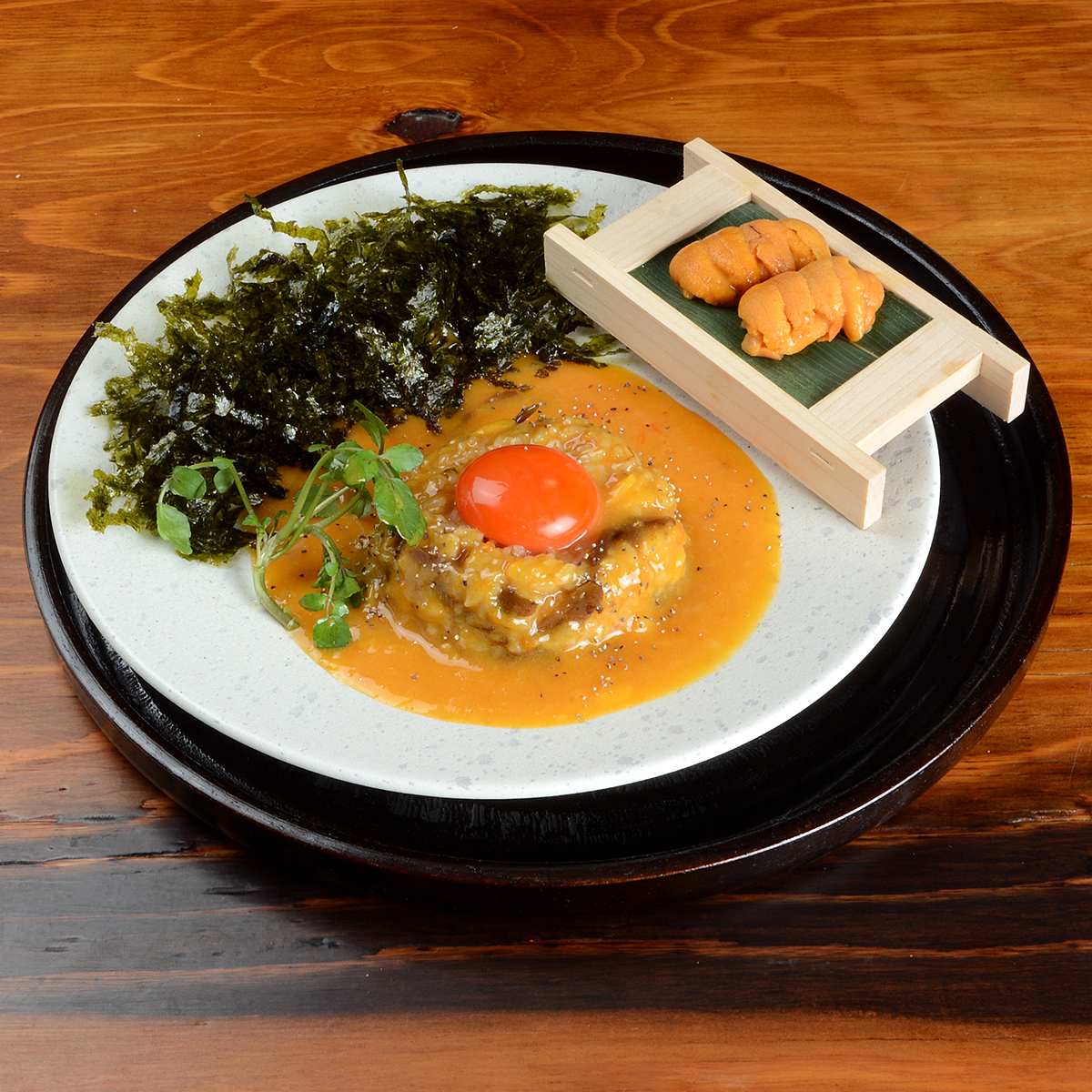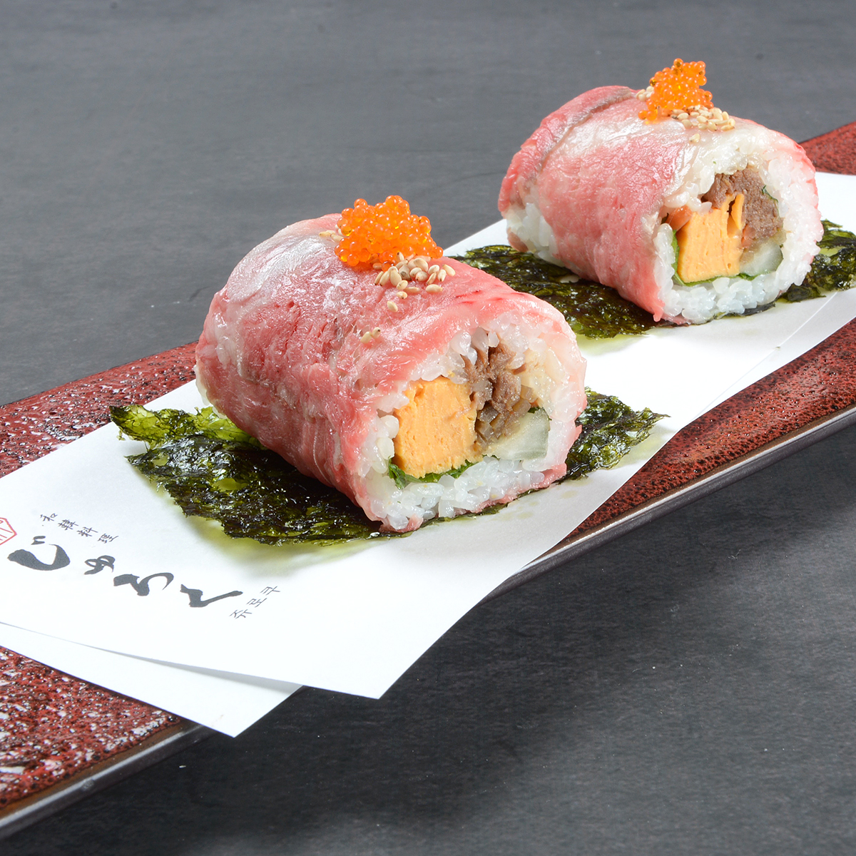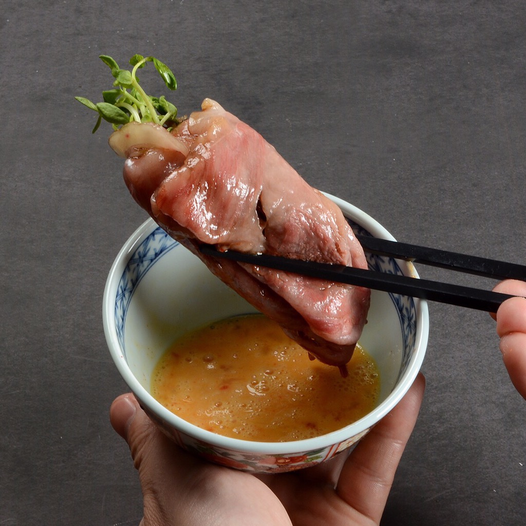 上質な鹿児島黒牛のロース肉を、和牛のスジ肉で炊いた玉ねぎとごぼうのきんぴらで巻いて、卵を絡めてお召し上がりいただきます。他では味わえない贅沢なプルコギをお楽しみ下さい。