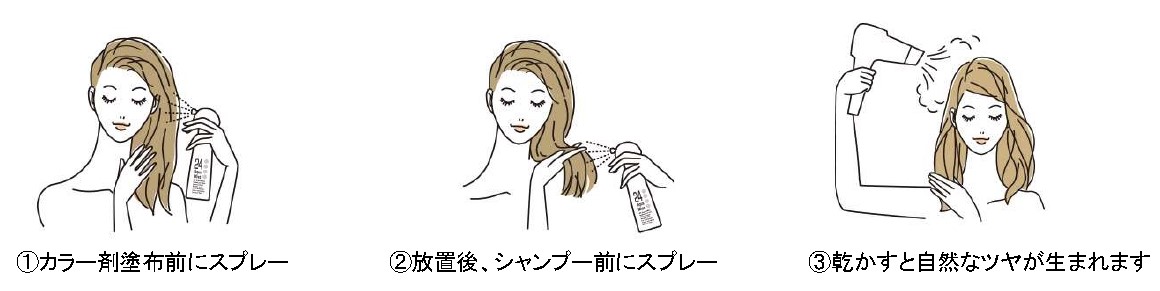 カラー剤を塗布する前後に髪にスプレーするだけでテクニックが不要なため、自宅のセルフカラーで使用していただくと、簡単に時短と仕上がりの美しさを両立できます。