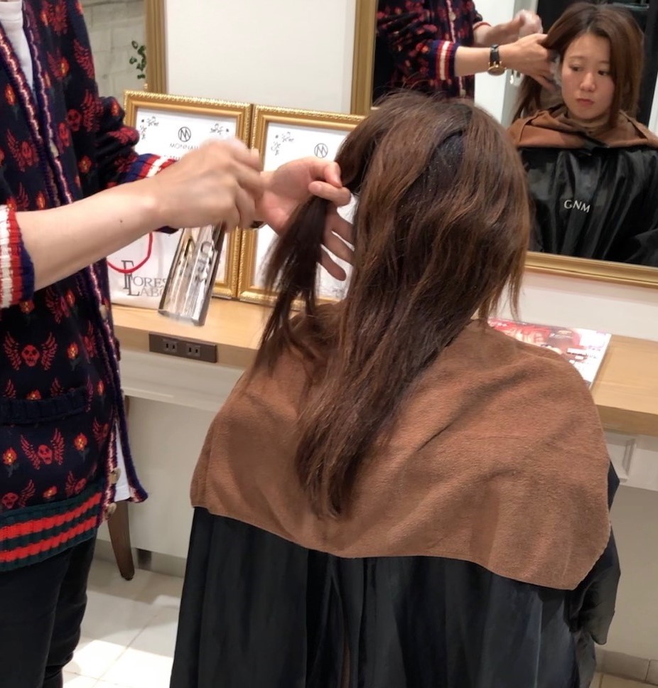 ①使用前:月一度の縮毛矯正とカラーリングを繰り返して、髪が乾燥し痛んだ状態