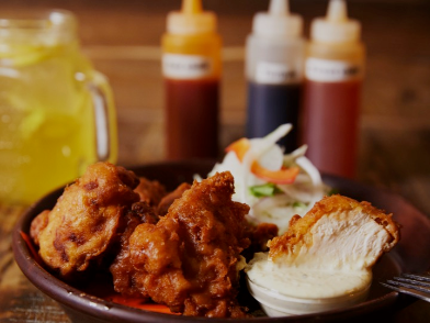 ロケットチキンは国産食材にこだわります。特に神戸店は宮崎ブランド鶏を、野菜は神戸の地元野菜を使用します。鶏肉を10種類以上のスパイスが入った秘伝のたれに漬け込み1枚ずつ丁寧に揚げていきます。食感はあまり文章では説明できないのが残念!揚げたてはサク、ふわ、ジューシー、ですが唐揚げとは全然違います、女性やお子様にもとても人気で、食べ心地が軽い新感覚フライドチキン。さらに決め手となるのが、国産野菜をピクルスに漬け込むところから仕込む、完成までに2週間を要する自家製タルタルソース。