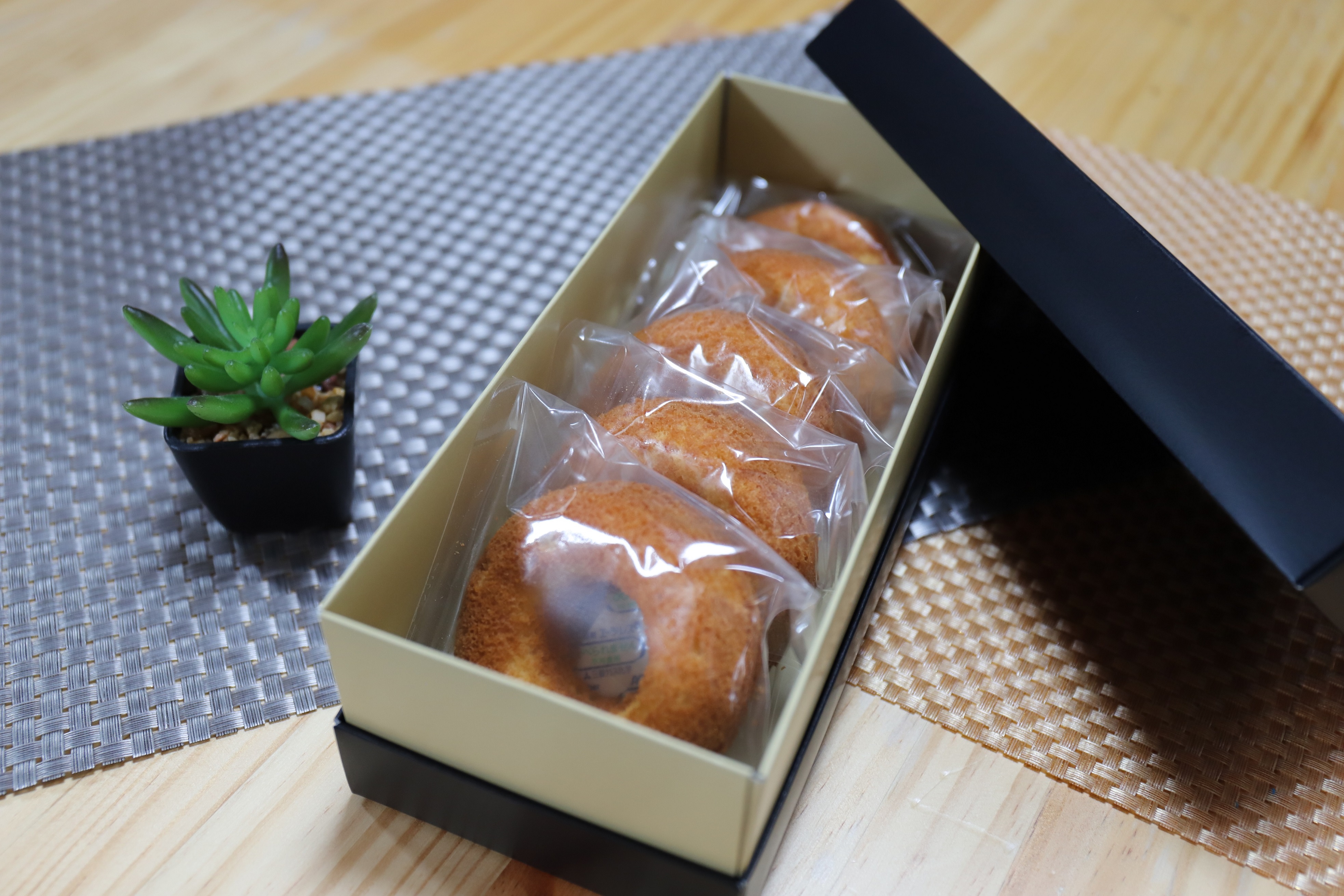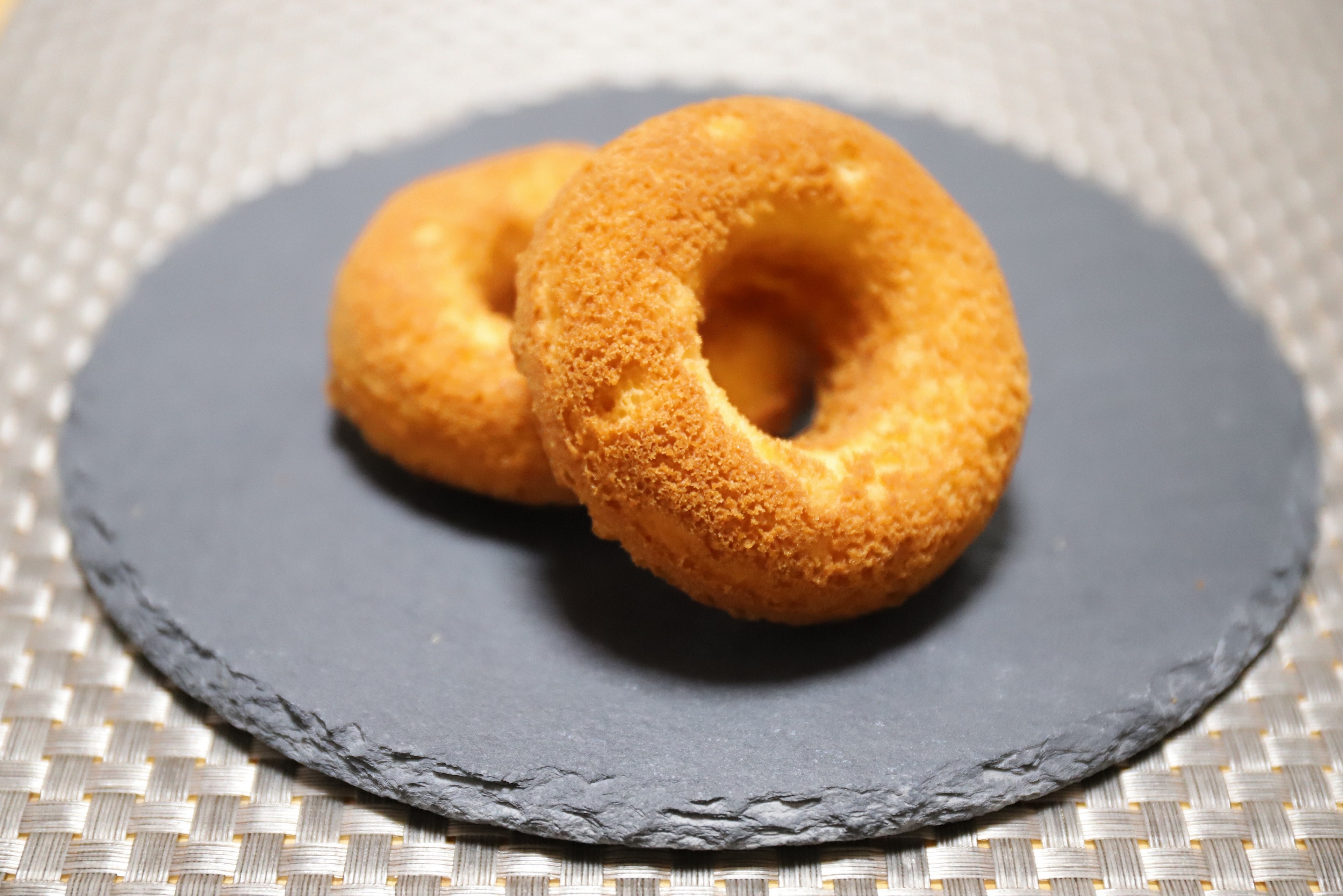 「焼きドーナツ~100th premium~」は、店舗で提供するハードドーナツに近づけるため、約1年かけて開発しました。創業当時から受け継ぐ小麦粉と卵、砂糖のシンプルな材料のみを使った焼きドーナツです。しっとりした食感で、口どけを良くするために、厳選した100%国産の小麦粉のみを使用しています。