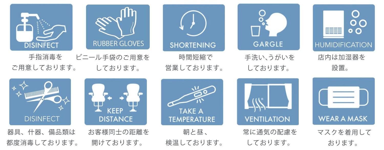 ・器具、什器、備品類は都度消毒しております