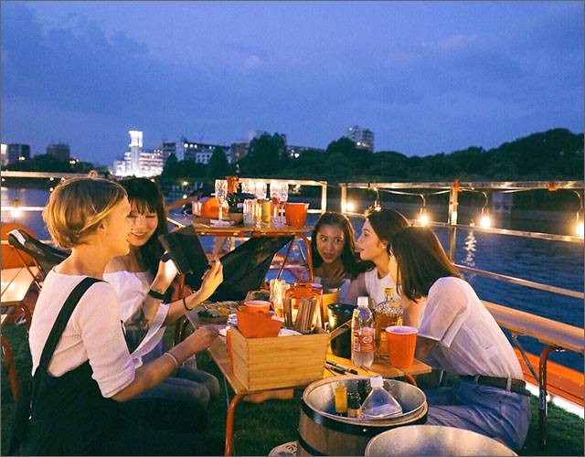 大阪でも屈指のお花見スポット、大川沿いの桜並木。当社が運航するグランピング船「MERRY GREEN」は、八軒家浜船着場を出着し、大川沿いを周遊しています。1階デッキと2階テラス部分は屋根の無い屋外空間で、感染のリスクも低く、1階デッキではバーベキューを行うこともできます。不特定多数が乗船する乗合コースを休止し、貸切コースのみを運行しております。定員60人のところ15人から予約可能で、人が密集しないように配慮しました。乗船時の検温や手指消毒、船内設備の除菌を徹底しております。