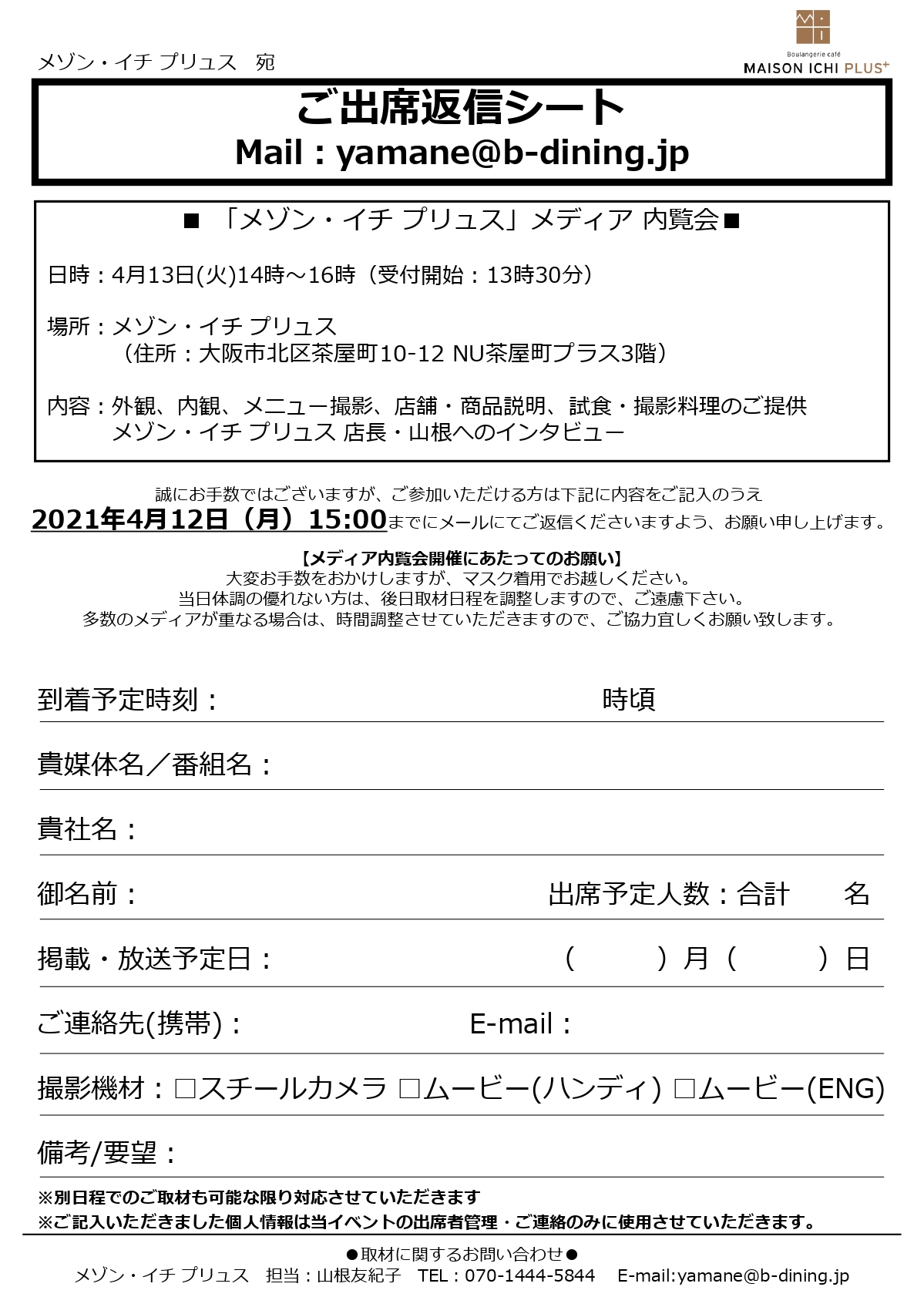 メゾンイチ プリュス 担当:山根友紀子 TEL:070-1444-5844 E-mail:[email protected]
