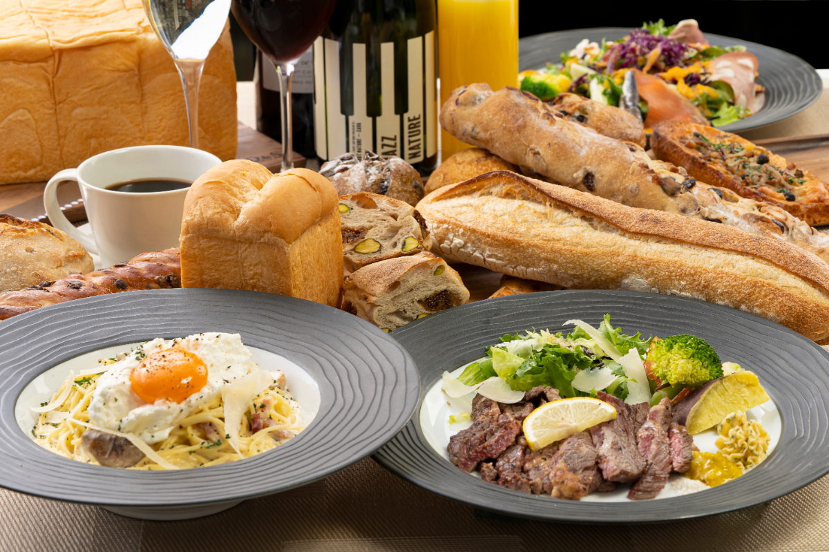 肉、魚、パスタなどの本格ランチには焼き立てぷるぷる生プルマンが付いており「そのまま食べてパンの味を楽しむ」「パスタソースにからめて食べる」など、ぷるぷる生プルマンの新たな一面も感じていただけます。
