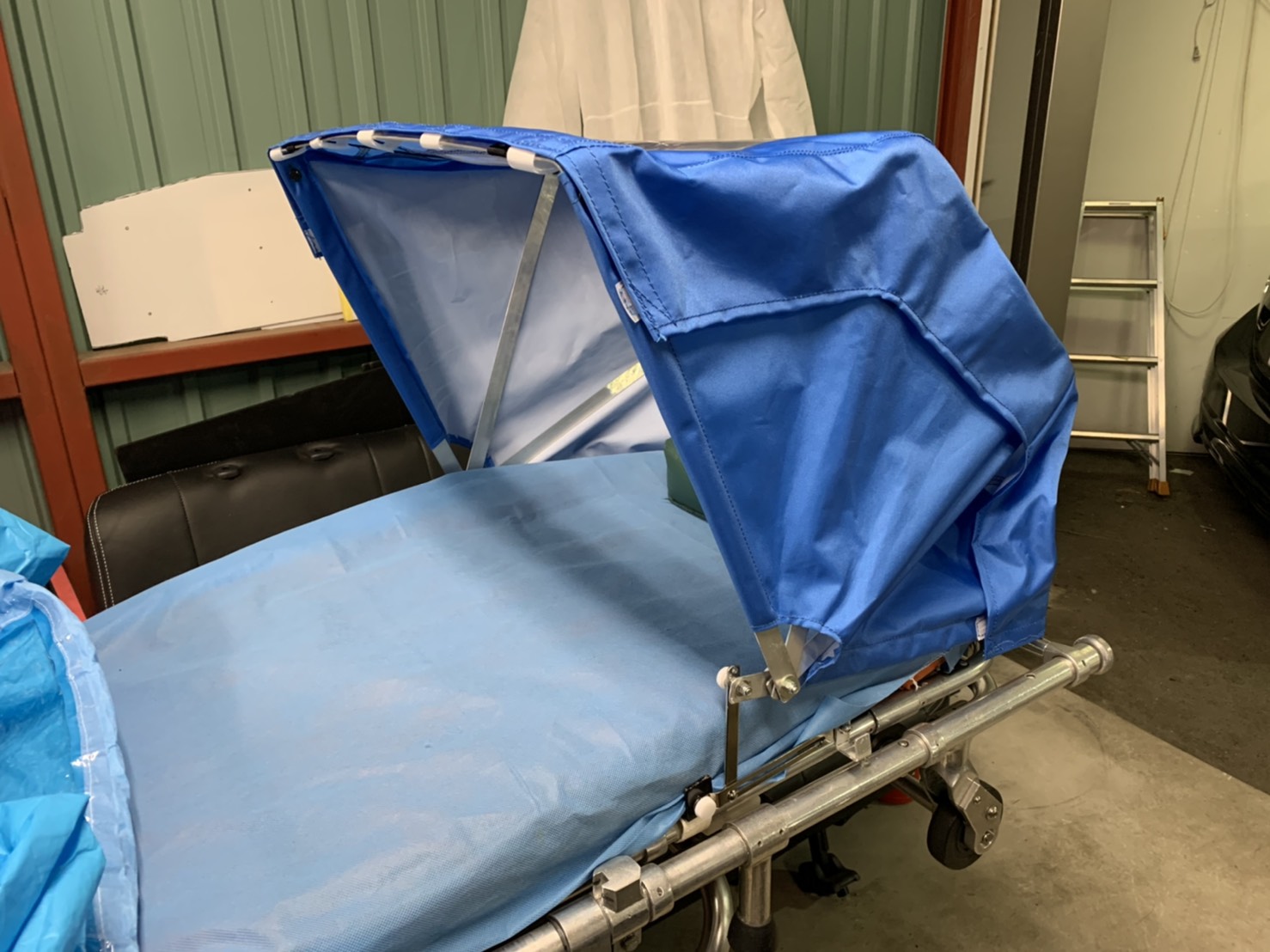 また患者様を運ぶストレッチャーに取り付ける「ストレッチャー用フードカバー」の販売も開始しました。