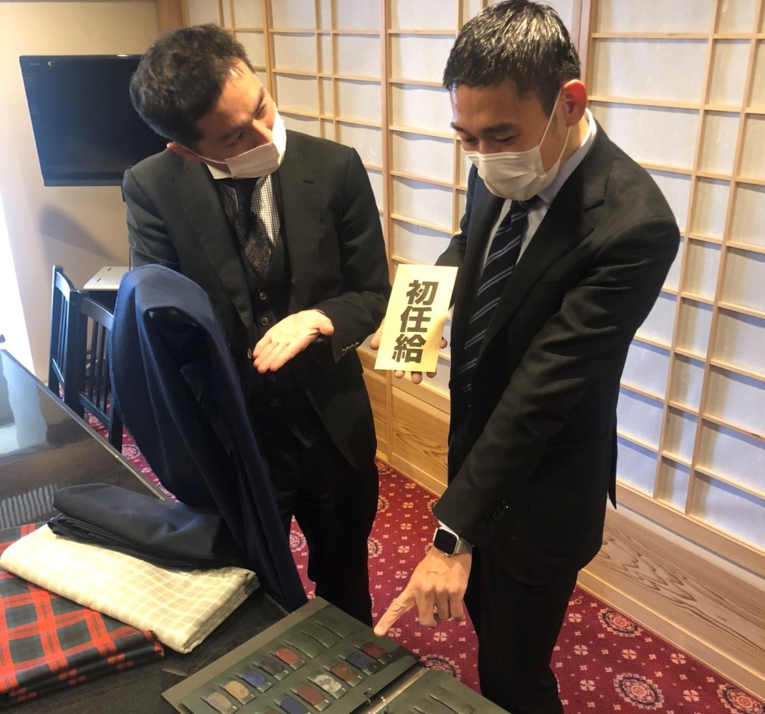 内容:初任給の1割の金額でオーダースーツをご購入いただけます