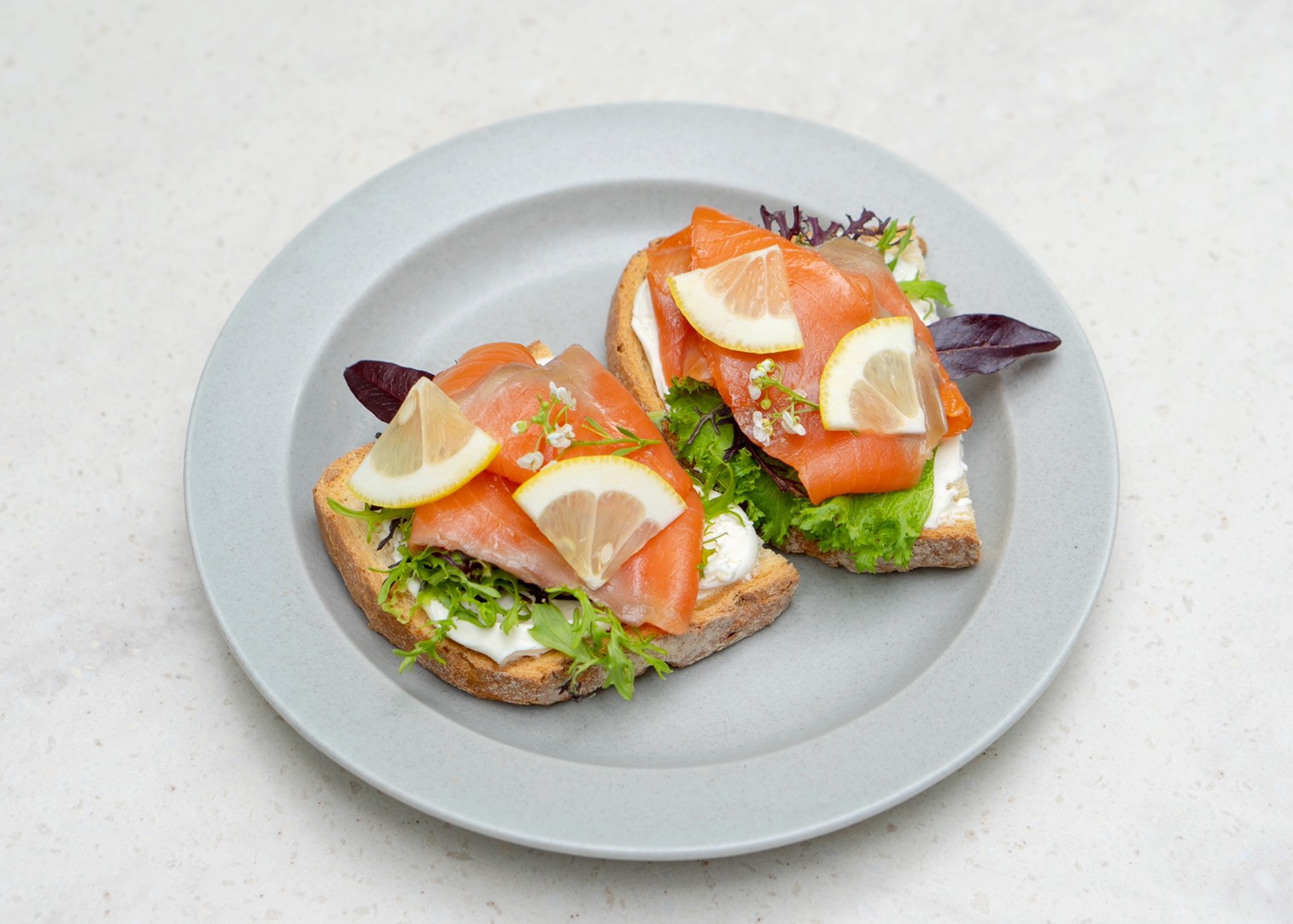 ・サワークリームとスモークサーモンのオープンサンド