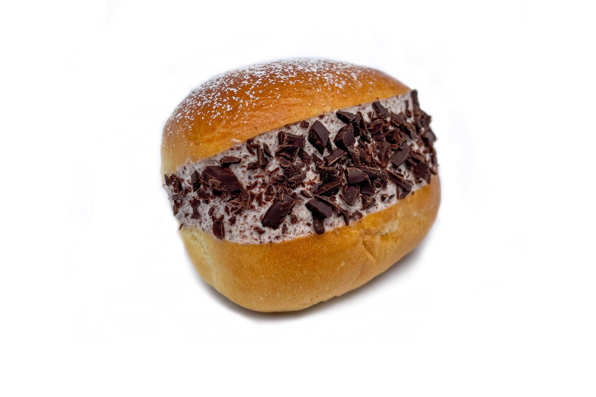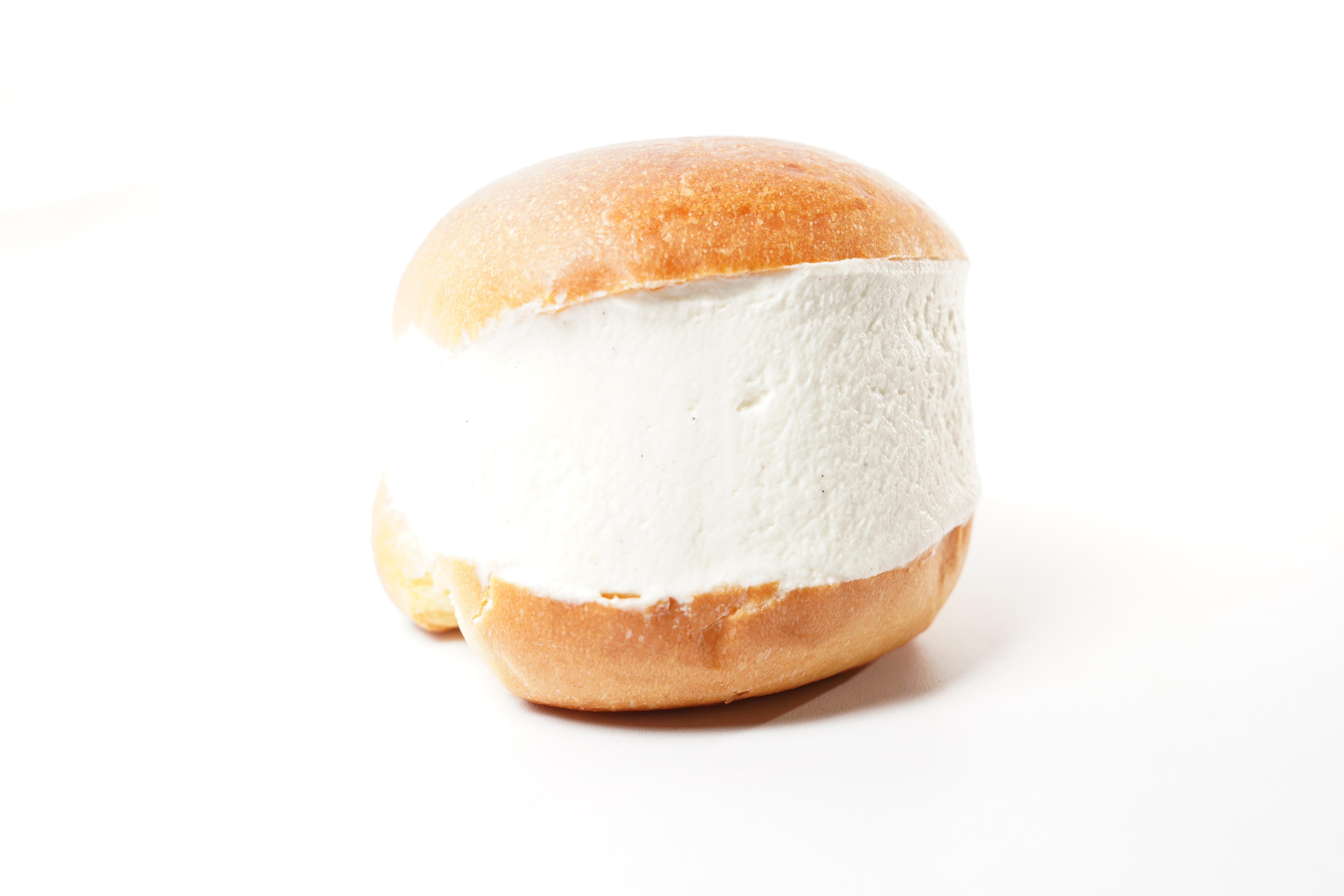 ブリオッシュにホワイトラムがアクセントの最⾼級バニラアイスを混ぜ込んだオリジナル⽣クリームをサンド。上品で⽢すぎず、⼝あたりの軽さと⾷べ応えを追求したこだわりの逸品。