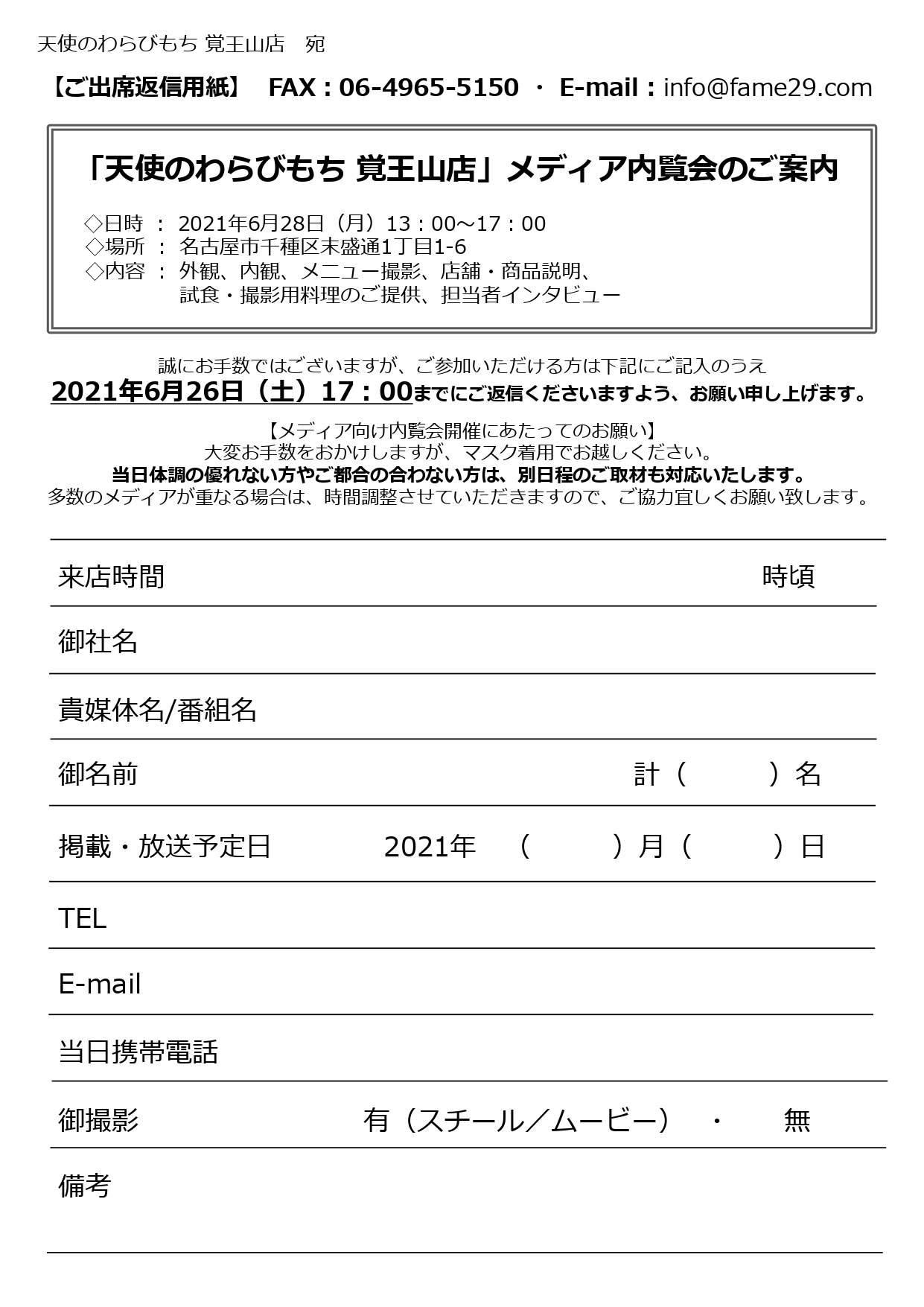 「とろとろ食感」の「生わらびもち」が看板商品の和菓子店「とろり天使のわらびもち」は2020年8月、大阪・中崎町(現在、天神橋に移転)に1号店を出店しました。関西を中心に東京、九州にも出店し、名古屋初進出となる10号店の覚王山店が、2021年7月2日(金)にオープンいたします。