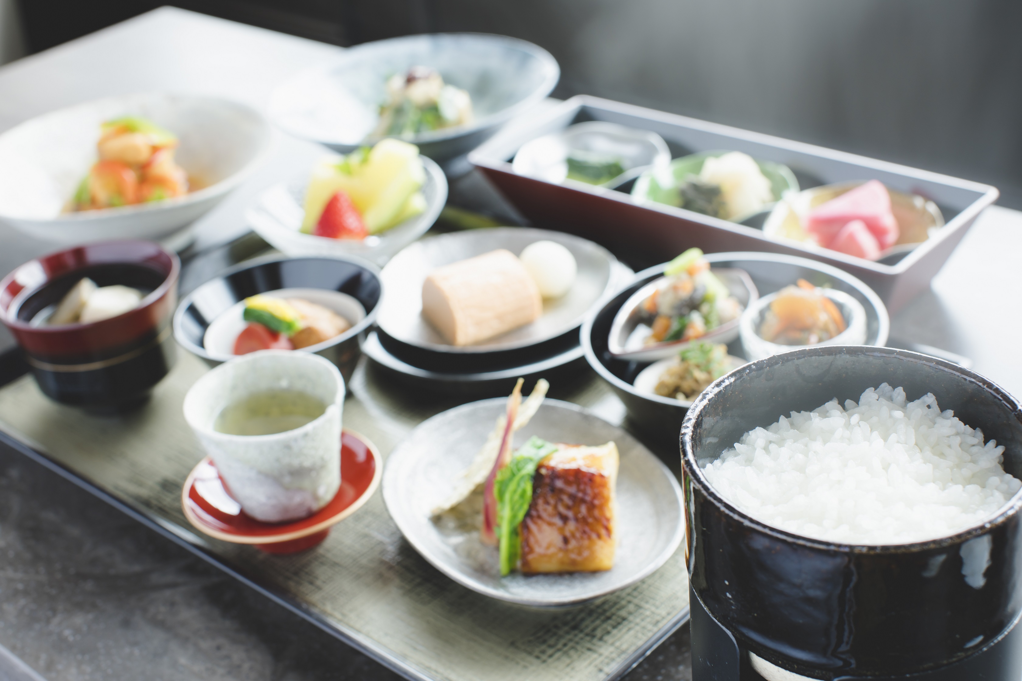出汁へのこだわりが活きる料理は、お昼はお弁当から会席コース、夜には炭火の炉を備えたカウンター割烹も。季節の食材を取り寄せ、様々な趣向を凝らした日本料理をご堪能いただけます。