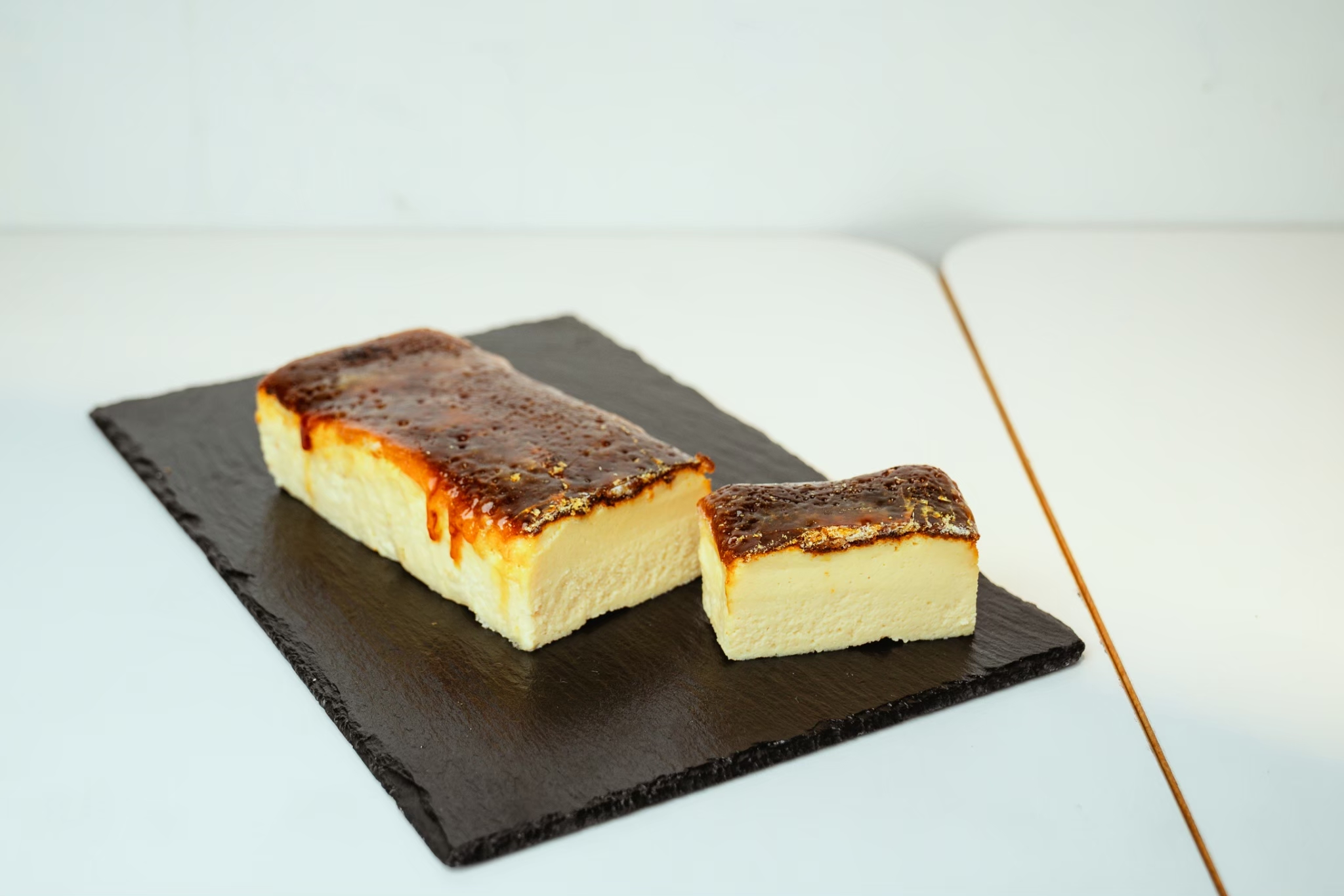 ③チーズケーキが苦⼿な⽅でも、表⾯をキャラメリゼにすることで「もう⼀⼝」を誘う商品に