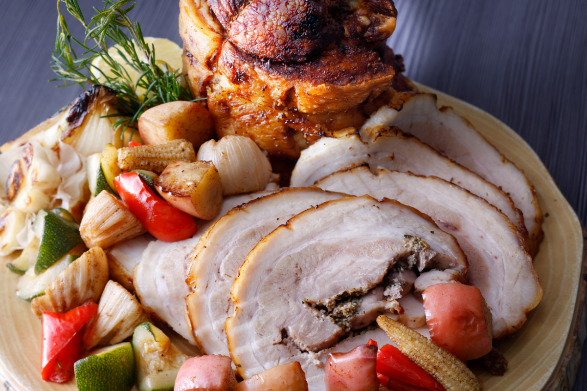 じっくり焼いたポルケッタ りんごとクローブの香りソース