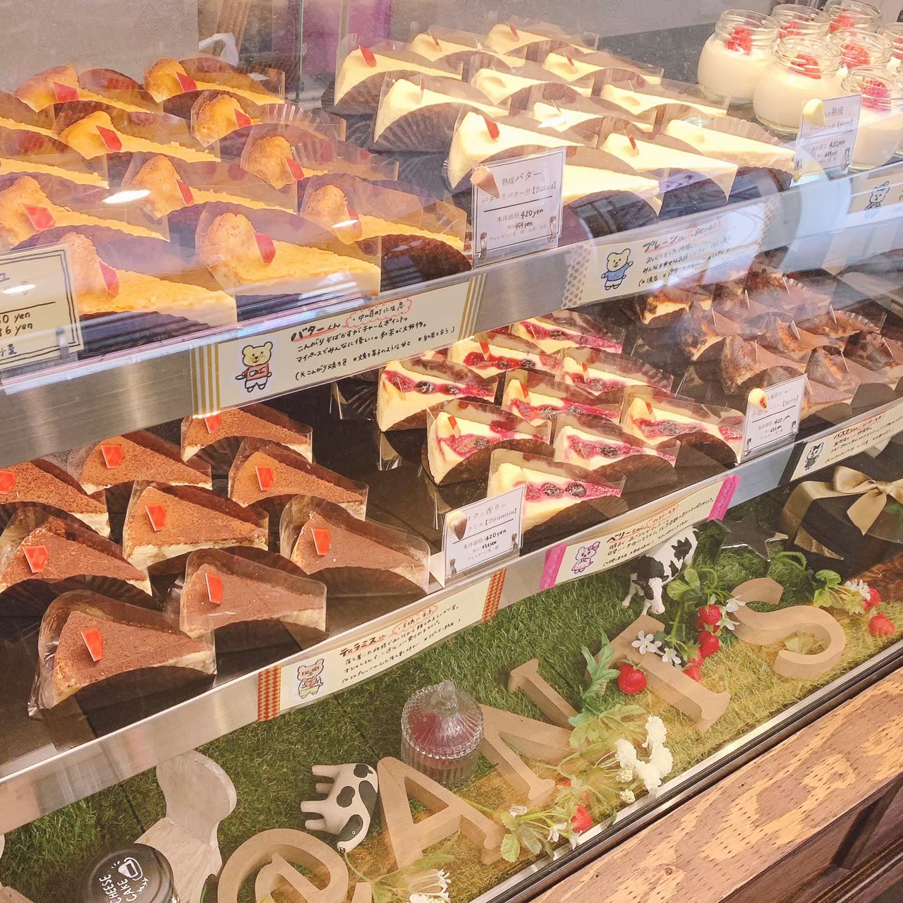 定番の6種のチーズケーキに加え、季節毎の月替りチーズケーキも販売。